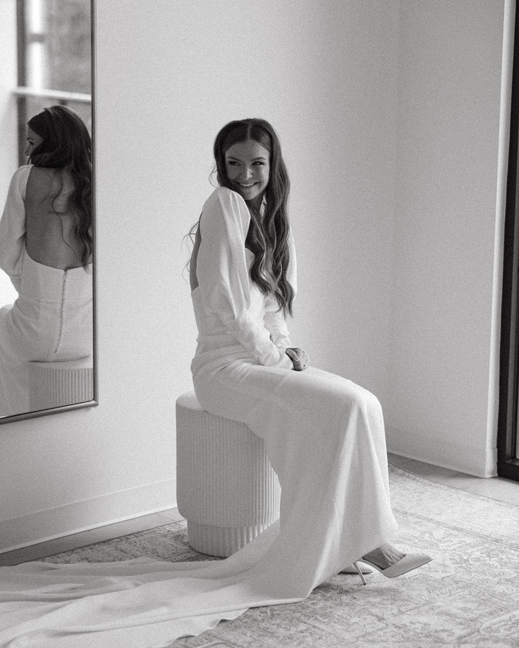 Erin’s dress was the Rose by The Label by A&Be, which had a modern sweetheart neckline and dramatic train. Her aunt helped us design optional-removable sleeves. Connor wore a traditional black custom-made tuxedo from Indochino Minneapolis.