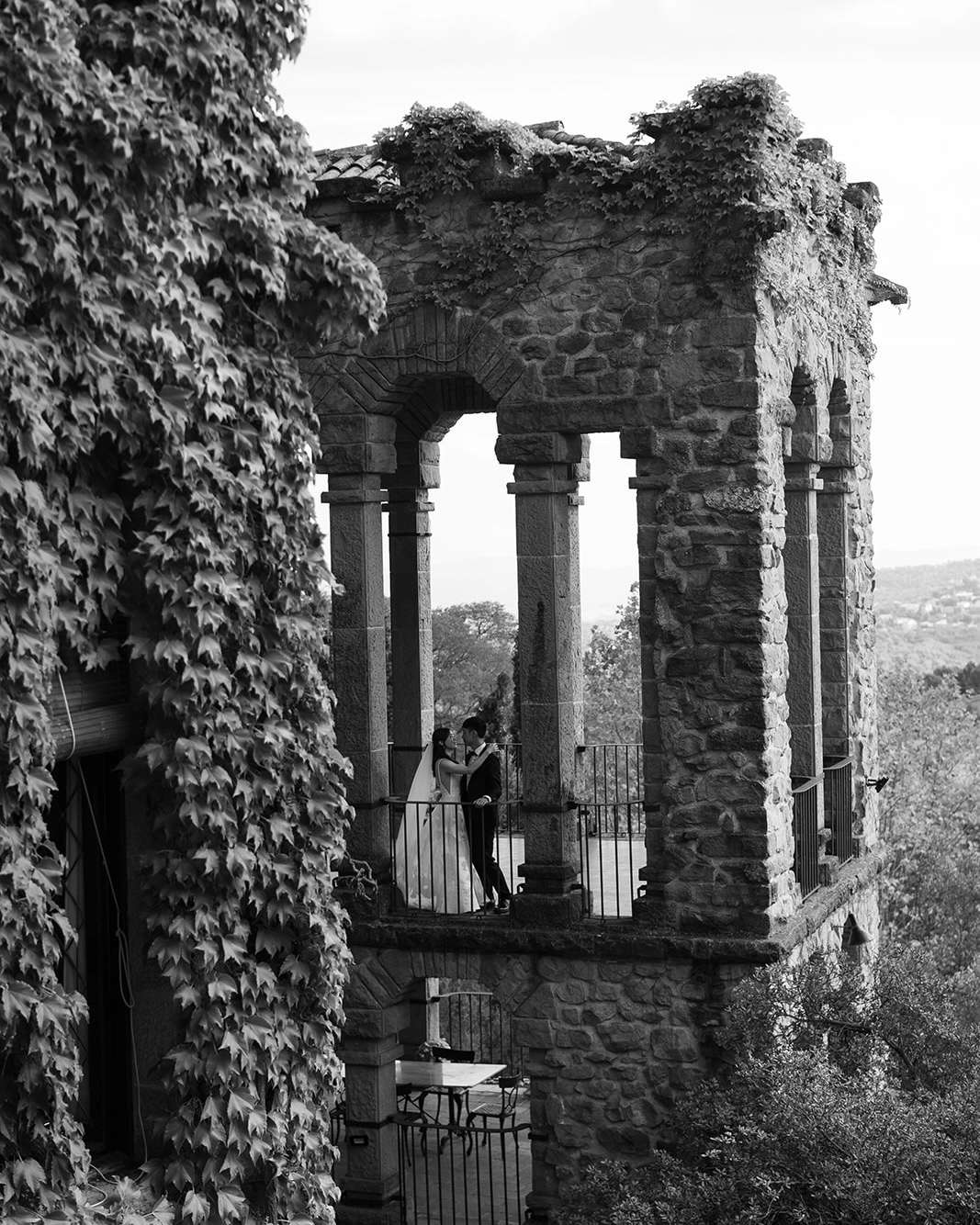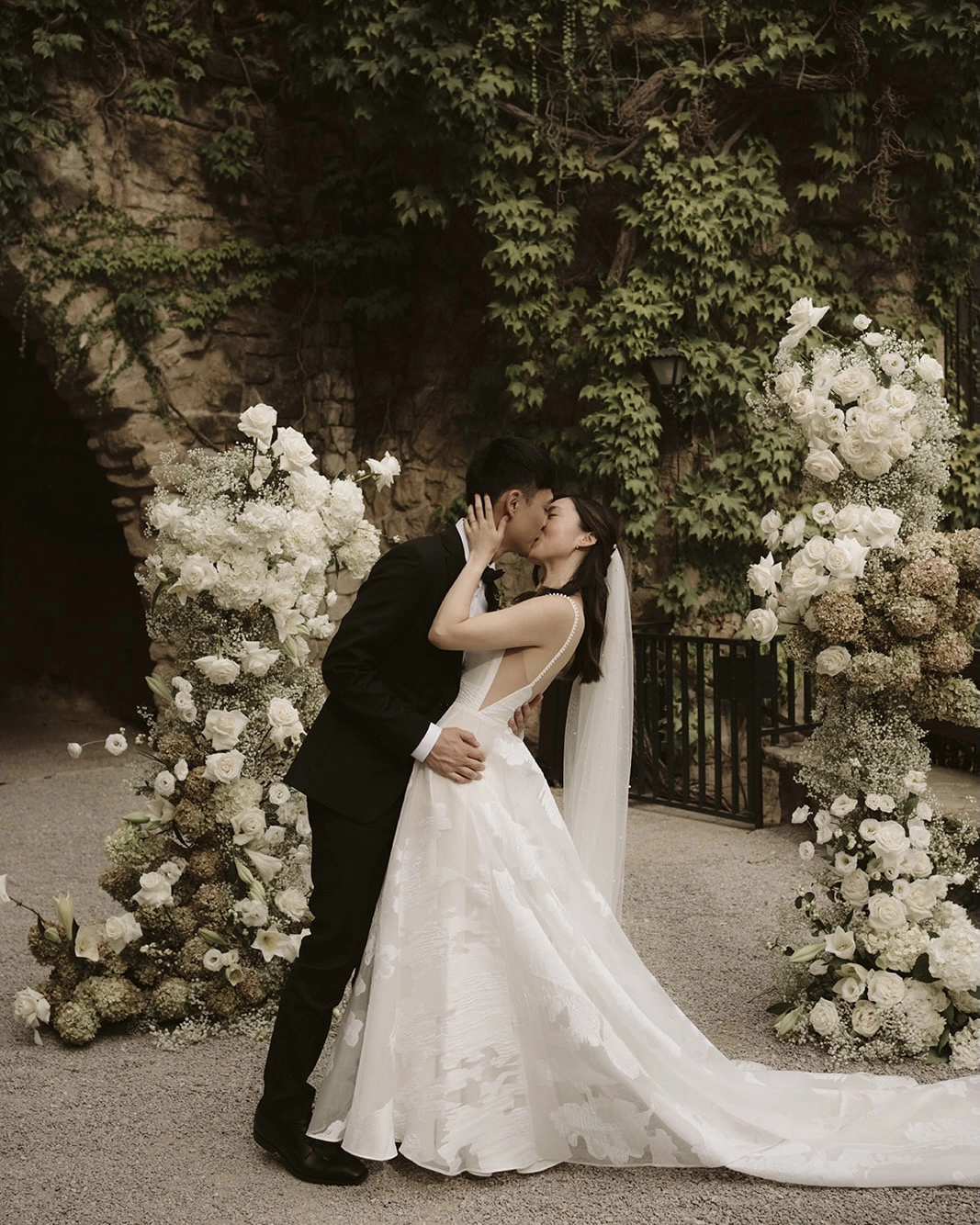 Since our honeymoon would be in Europe, we decided to have a destination wedding so we could curate a smaller event and minimize travel time. Joey created a master vision board while planning the wedding, saving photos from across social media. Her Pinterest board had separate sections for each aspect of the wedding from the visual concept and florals to makeup and photography style. From her saves, she realized she was drawn to relaxed intimate weddings with black-and-white timeless photos capturing the natural feel of the event.