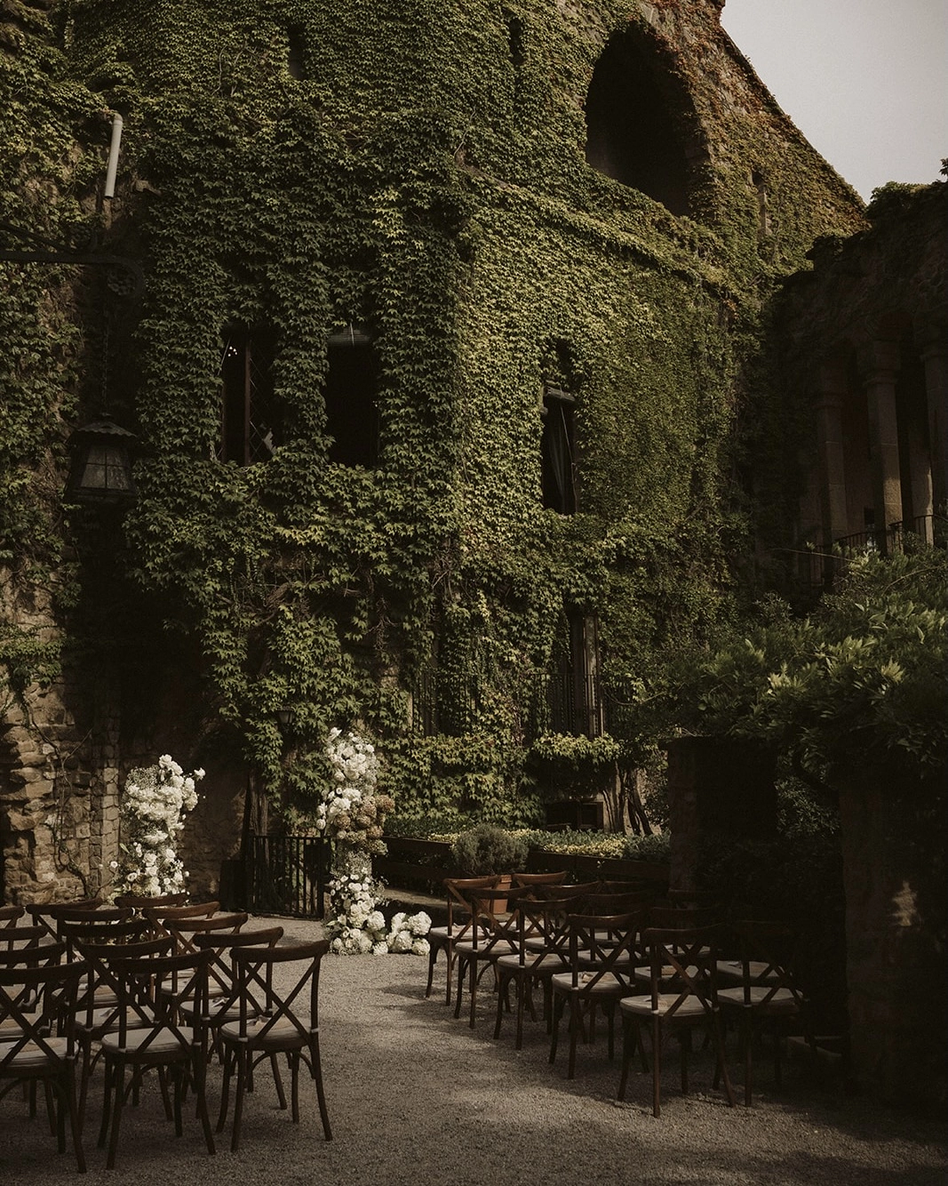 Our vision was an intimate laid-back celebration at a villa with natural greenery. La Baronia in Barcelona was the perfect place. It had the feel of a countryside castle and was tucked away in the mountains far enough from the bustling city yet still easily accessible. We loved that it included catering and other services, simplifying the vendor search. The ideal was to have both the ceremony and reception outdoors with dinner served at a long table and this venue had wonderful spaces for it all. The interior of La Baronia served as an elegant warm setting for our private first dance and vow readings.