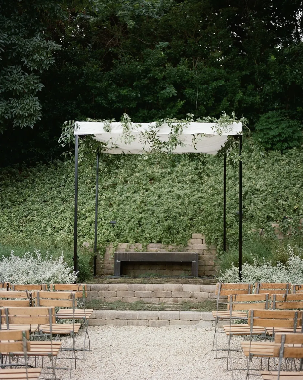It took about a year to plan. At first I thought a backyard wedding would be easier than a venue but quickly realized that was a terrible assumption. We had to cover the pool and bring everything in, build a kitchen in the garage to accommodate the cooking for the guests and turn many of the spaces over during the event. I really wanted each part of the wedding to feel different and have an element of surprise for the guests. We had a cocktail party, ceremony, reception, and after party. The ceremony was flipped into the reception space during cocktail hour and the cocktail area was flipped into the after party during the reception.