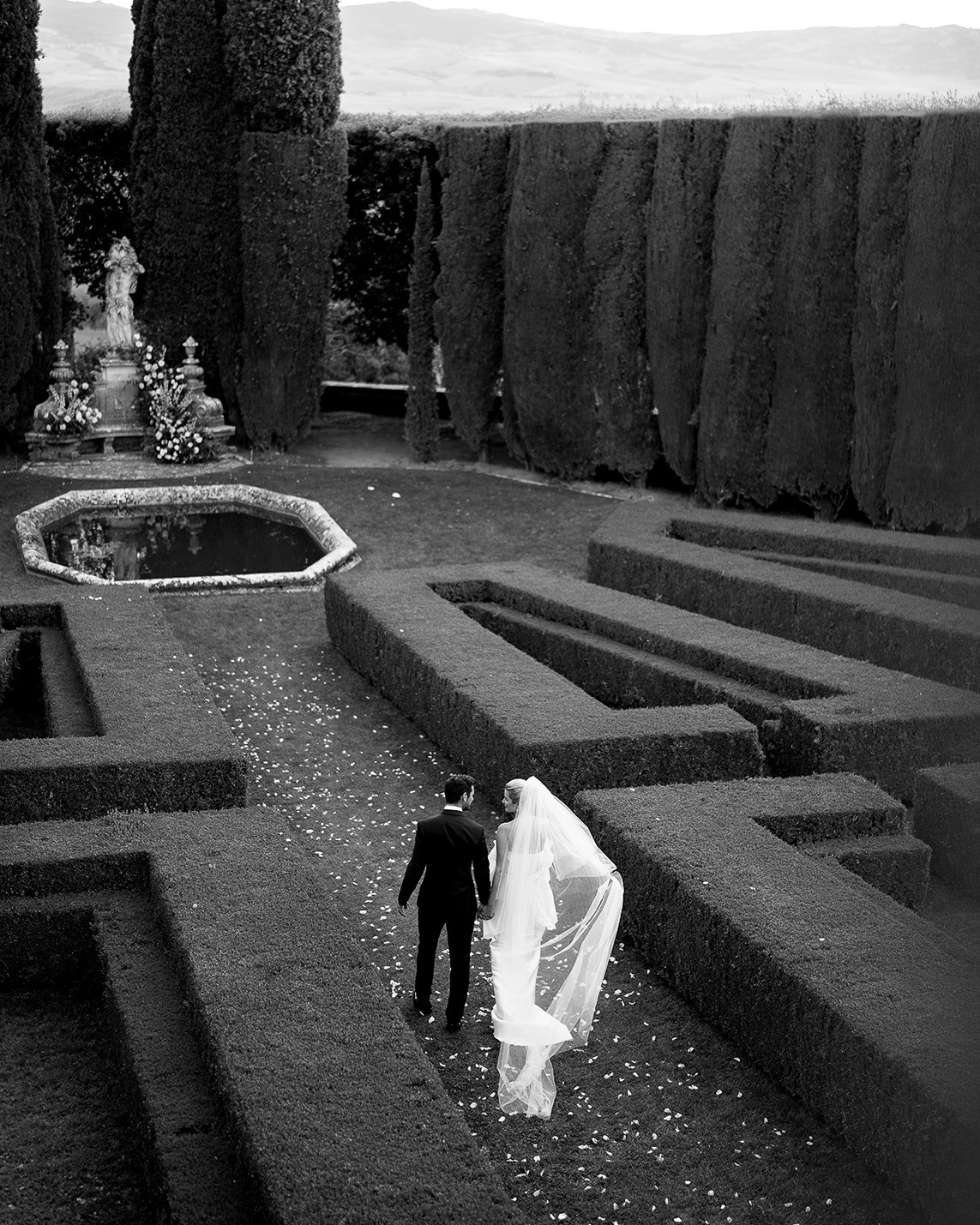 With both of us being such big Italy fans, we decided to get married at La Foce in Tuscany. For us, it is one of those places that just has it all. The spectacular garden, the romantic villa, and of course the view out into the iconic Tuscan countryside.