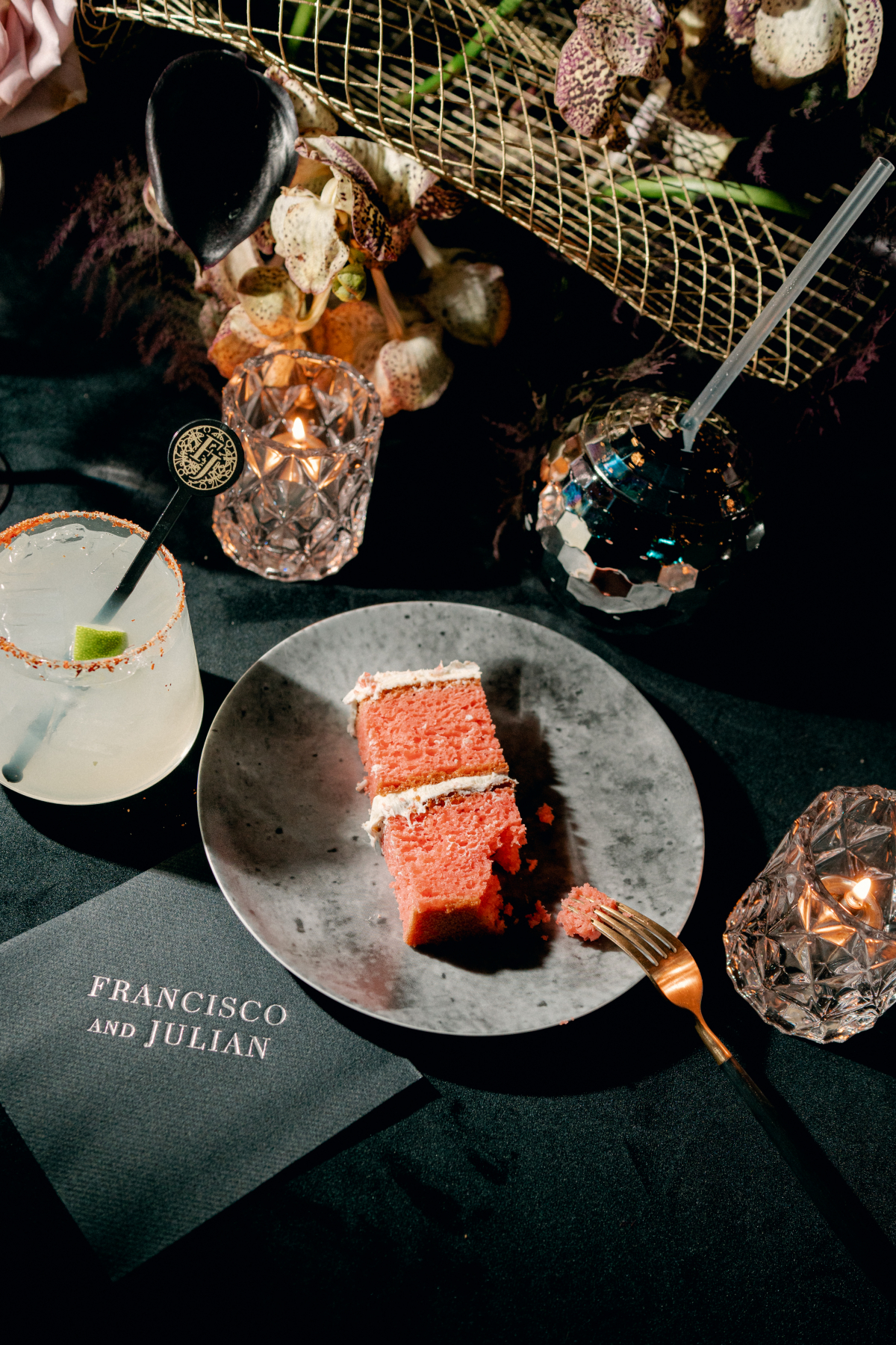 I mean, where on earth do we start? The theme again here is trust your vendors. Sarah had a real vision for the way that all of our wild and crazy ideas were going to come together, and we truly trusted her to help make that happen! I think the images really speak for themselves, but I would say the highlights are… the ceremony tent, the mini charcuterie escort cards for each guest, the Julisco Coke station (Julian has been sober for 7 years, and this was a way of incorporating non-alcoholic beverages), the specialized decor items on all of the bars from Francisco's interiors business, Casa Bella Staging + Design, the Julisco disco after party items, the unique stage design, and the incredible lighting by the incomparable team at JacobCo Creative. And then there was the floral from Gro and the tabletop from Top Tier! It felt like each detail was perfectly curated to represent our story and the way we like to live our lives!