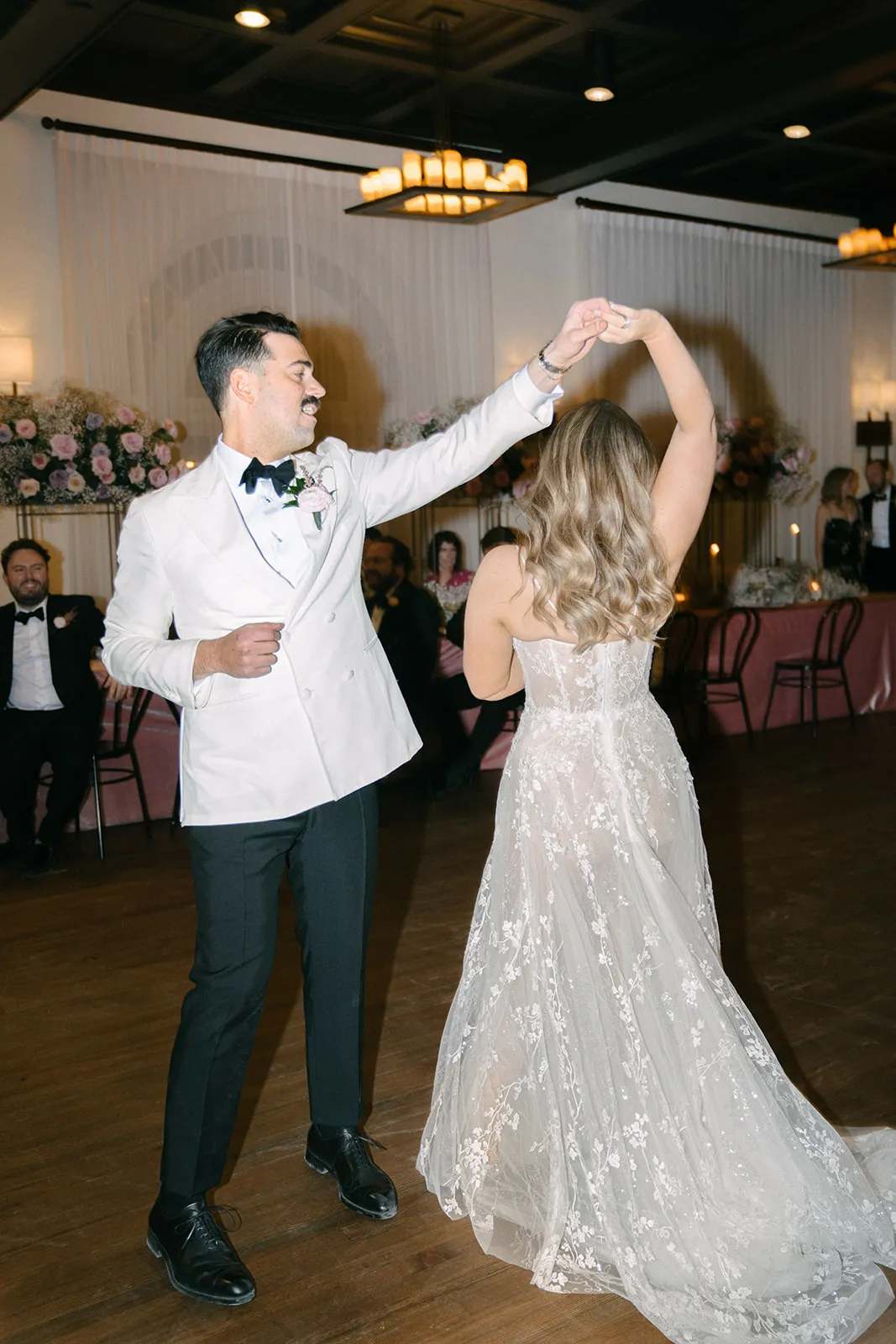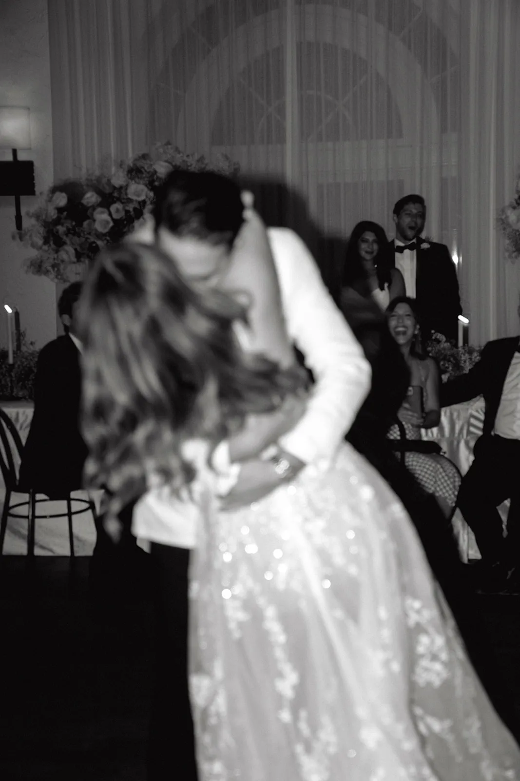 Our first dance song is actually not an actual song, but it has a lot of meaning for our relationship. We’ve spent countless nights singing and dancing to this song. It’s a 1981 YouTube video of Stevie Nicks singing backstage with her piano player while she is getting her makeup done. She’s singing ‘Wild Heart’ but a version that was never produced on the album. Alex showed it to me when we first met and it became our song. It reminds me of my mom’s beautiful singing voice and how she would have loved him if she had the chance to meet him. It’s so intimate and her raw singing voice sounds so beautiful. We had a friend who’s a sound designer digitally remaster it, so it sounded clear in a large ballroom.