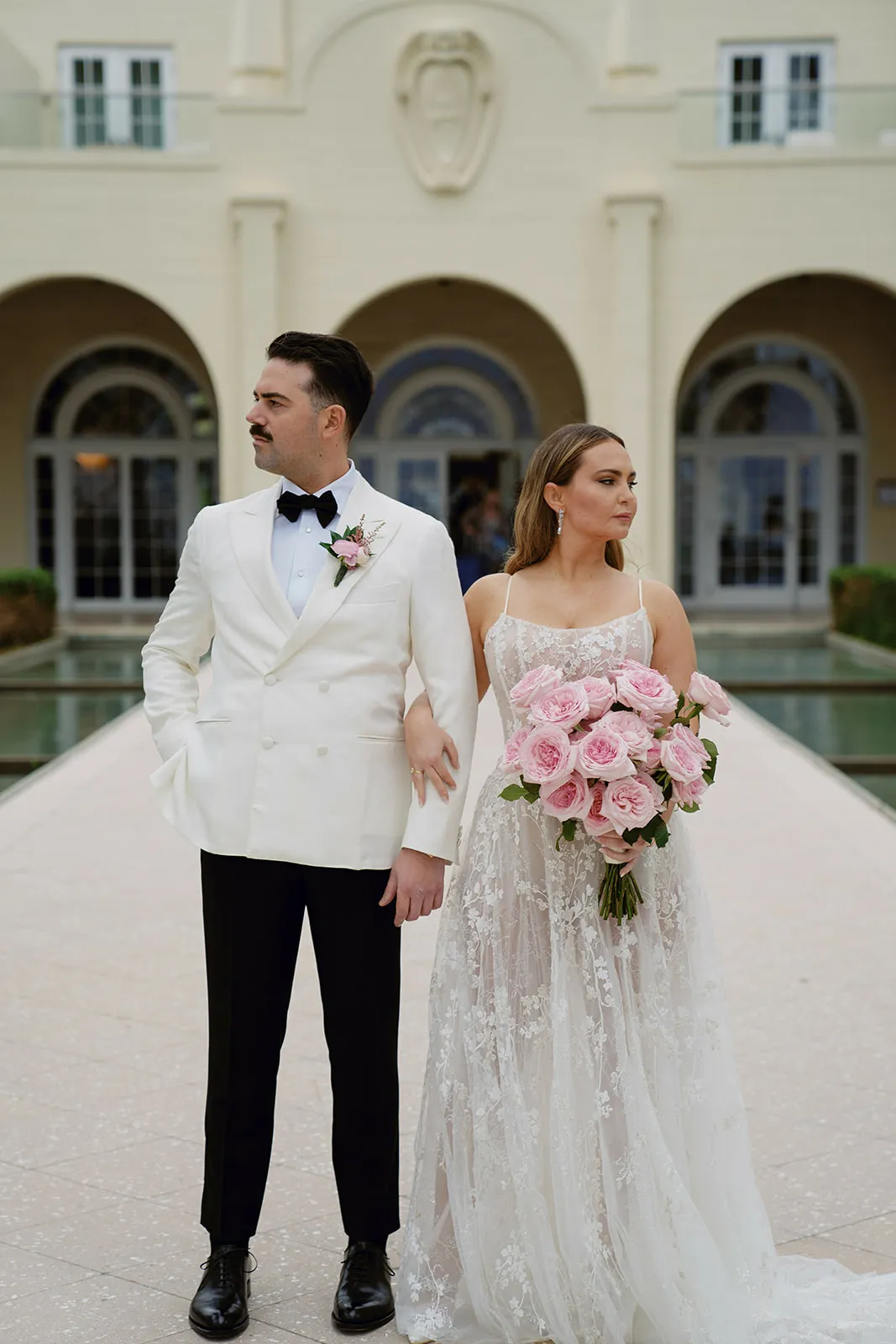 I wanted something soft and oversized. I didn’t use any greenery purposefully because I didn’t want it to compete with the textured lace of my dress. It was just a few pink O’Hara garden roses, and they smelled heavenly.