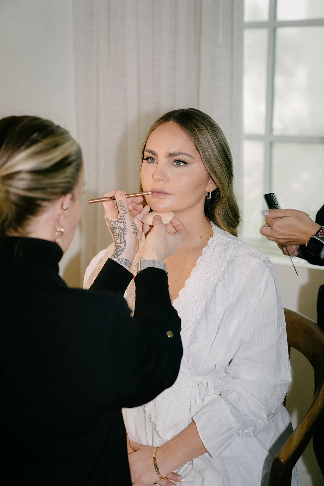 My hair and makeup team, Glam by Maggie for makeup and my hair was done by Jessica Chen. I got extremely lucky that they were willing to do my wedding because of how experienced they were. They normally only work in editorial and for large high end fashion brands. They were one of my favorite parts of the weekend because they are so talented and they made me look like a million bucks. It was so much fun getting ready with them. They are genuinely some of the nicest people I’ve ever met. Plus, they just make you feel you have two cheerleaders in your corner who want you to look and feel your best. They even ushered me to the aisle last minute as the wedding planner was missing!