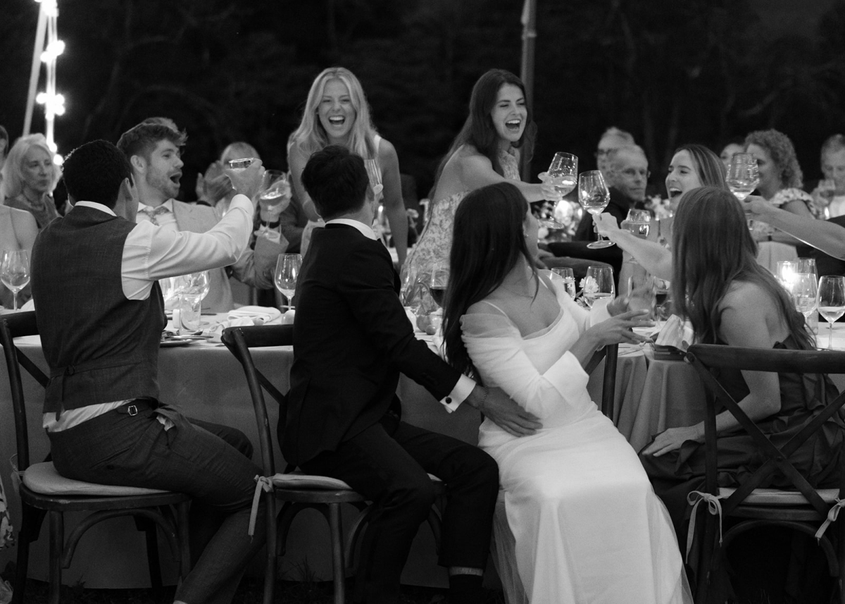 Spend some time before booking your venue to land on your overall vision for the day, focusing on how you want it to feel before landing on what you want it to look like. I found that refining the vision was grounding throughout the process when it came to seeking the right vendors and choosing design elements. I was able to have more productive conversations with potential vendors because I was so clear on what my aesthetic was, and how I wanted our guests to feel. I would also say don't get too caught up in wedding trends, or what other people are doing at their wedding. Tune out the noise and stick with what feels natural for you and your partner across all aspects of the day — from what you wear, to the design, the music, the timeline for the day, all of it. If you do, it will all come together perfectly. Little things may not go your way, and it can all be overwhelming at times, but be sure to remind yourself to take a step back and lean into what truly matters - the celebration of your love! Oh, and the couple sets the tone, so if you want a party you have to be out there partying.