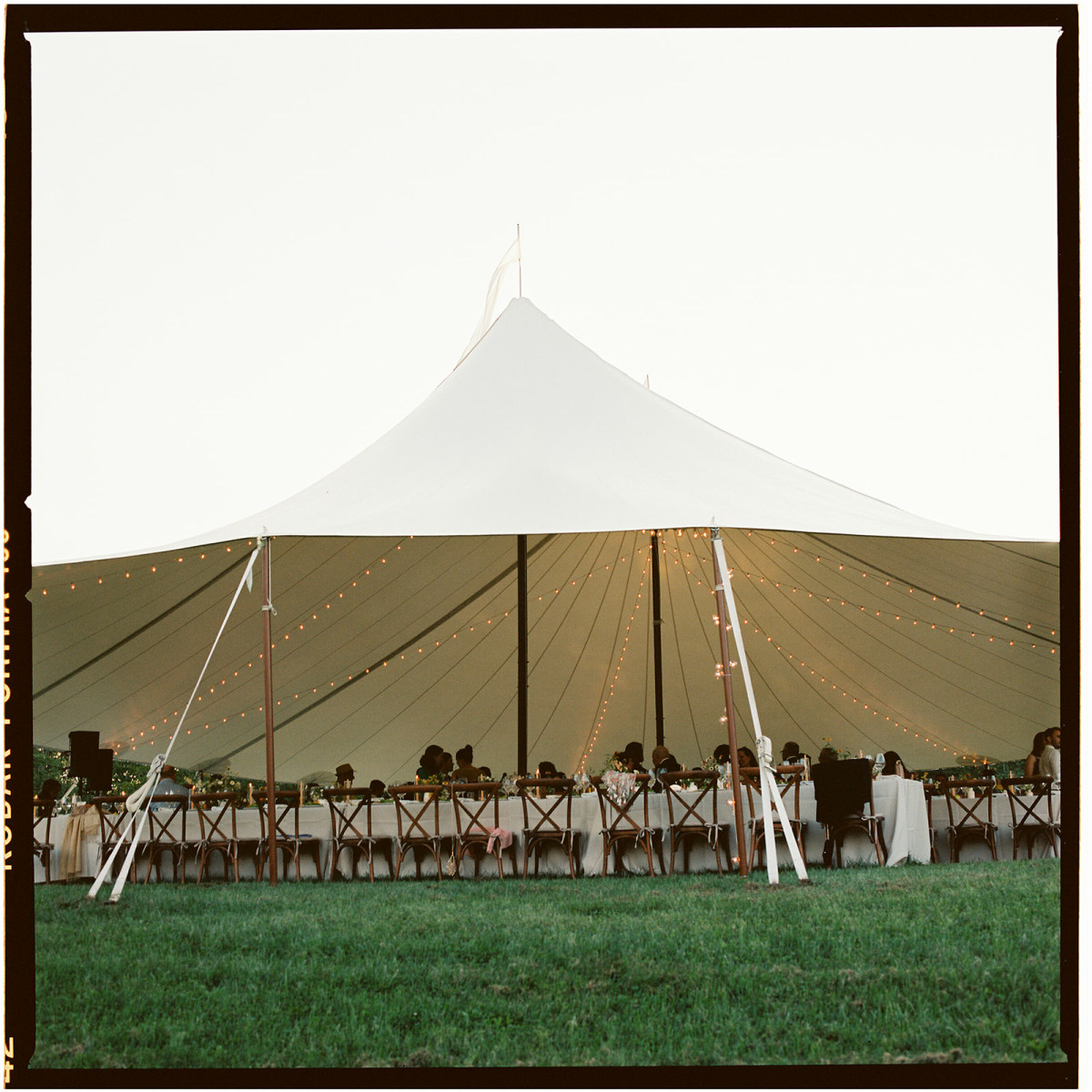 It is so hard to choose just one moment! We didn't go for the traditional — groom sleeps away from the bride the night before, so we woke up together in our room at the Kenmore. The morning of the wedding we had the most lovely, quiet breakfast together in our room. We were excited, nervous, and curious about what the day had in store. I'm a more anxious person, and having that breakfast together before the whirlwind of the day was perfect to calm our nervous jitters. Following breakfast we went our separate ways to get ready — I stayed at the Kenmore and Will headed to his parent's home. I decided to do my own hair and makeup for the day, which may sound crazy, but it took the pressure off not having a rigid hair and makeup schedule that morning. It allowed Will and I to spend the early morning together, and made getting ready feel more intimate with just my mom, sisters, my best friend, and sisters-in-law. All of us crammed in one bathroom together with music playing — it was a highlight. For our ceremony, we opted to write our vows. We laughed and cried through them, which was slightly embarrassing but all in all incredibly special to let our guests in on our love story. Whenever someone would ask us how planning was going leading up to the wedding we would usually respond something like, "We just want it to be the best party ever", I'm biased but I think we did just that! We had a dance set before sitting down for dinner, and it amped up the energy under the tent. It truly felt like everyone was letting loose, having the time of their life. As cliché as it is, the feeling of everyone you love the most surrounding you in one place is unforgettable.