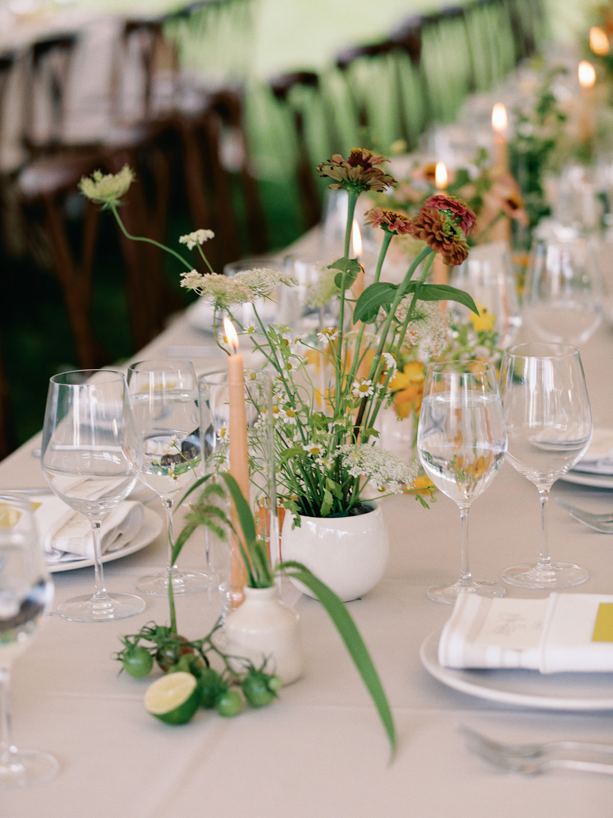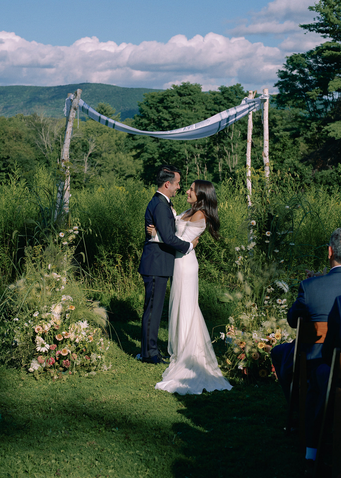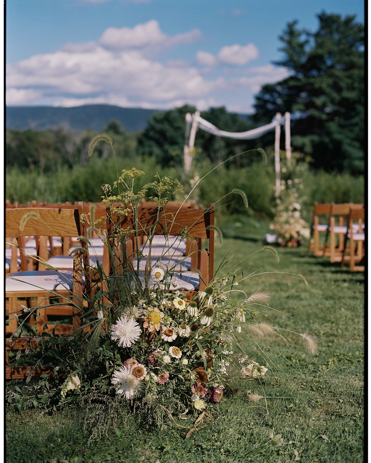 We wanted our day to feel true to us and felt strongly that it didn't feel stuffy or overly formal. Our wedding was at the end of August, so we wanted an end-of-summer soireé vibe, pulled together with a celebration of our love and an epic party. The month after we got engaged we took a trip to Italy — we spent time in Ischia and Puglia. I fell in love with the abundance of moss-covered terracotta pots, the overgrown flowers, and al fresco dining. In the beginning, I pulled a lot of the design inspiration from our European adventure. As we spent more time in the Berkshires and around the Kenmore, we got to know the landscape of the area and felt like we could lean more into the upstate, overgrown wildflower, natural beauty vibe with hints of Italian summer. Richmond is a super casual, low-key town, so we didn't want to stray too far from that. We both have pretty rambunctious families and friends, so the relaxed nature of the day allowed them to let loose and have fun which is all we could ask for!