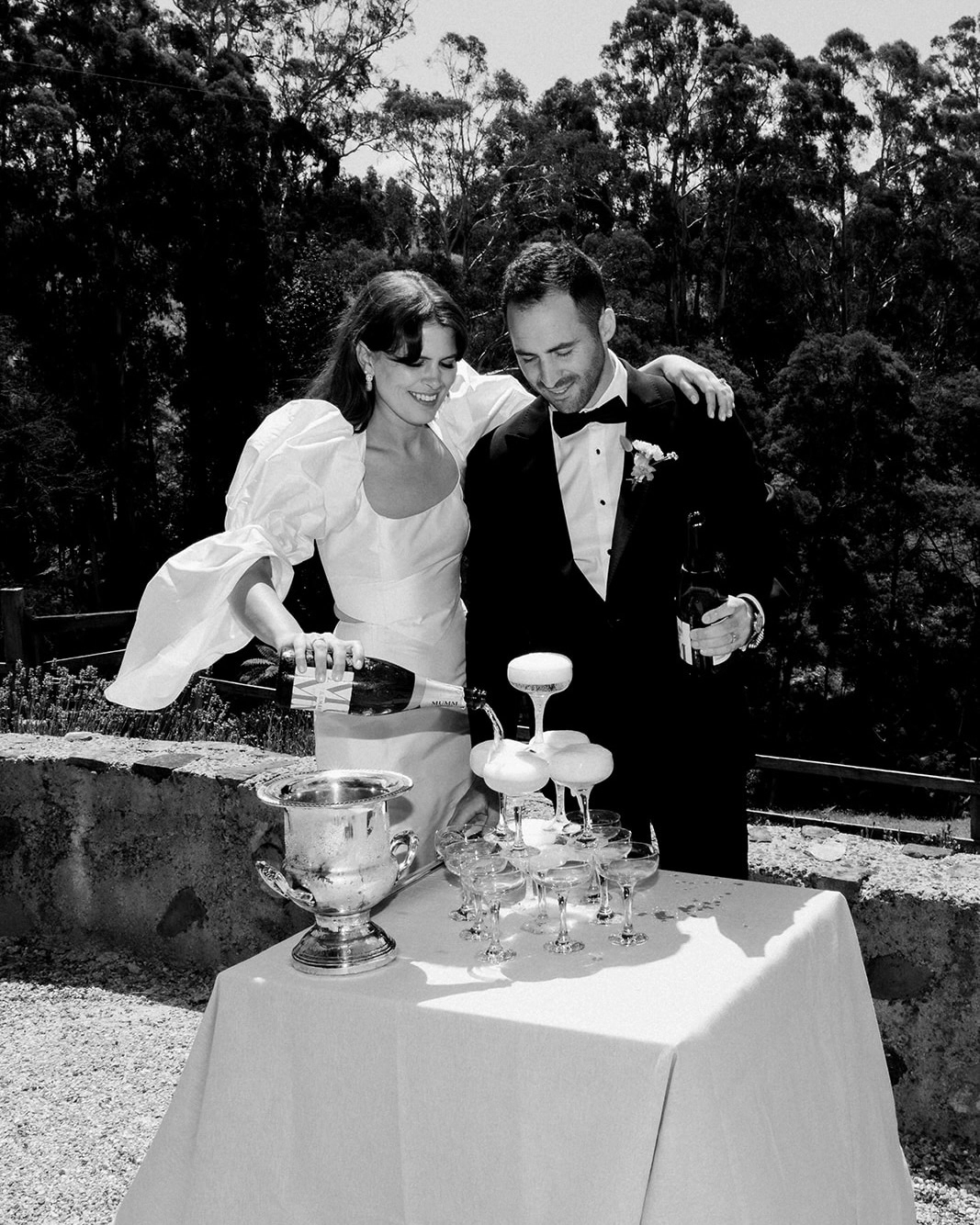 We were engaged in Florence in 2022, it happened on our last day. Mike had purchased the ring the morning of, while I was getting my hair cut. I had absolutely no idea what was coming. We met at the bottom of the Giotto’s Bell Tower along-side the Duomo before we ventured up. Mike insisted I walk up first, I assumed this was because I was always much slower (not because he had a ring bulging out of his pocket). We got to the top and caught our breath. At the top of the tower there was fencing along the edge, so I put my camera in between the wire to take a photo of the city. I absolutely nailed the first photograph, but Mike looked at it and suggested that I take one from a different spot. This probably should have been a give away, as he would never suggest I take more than one photo — but I was completely oblivious. He ushered me off to the other side where there was nobody else. I put my camera up to the fencing again to take a photo and I turned around to Mike down on one knee. In all honesty I think I blacked out a little after that, I was in so much shock I forgot to say yes! Until Mike whispered, “this is where you answer”. Spoiler, I said ‘yes!’ We celebrated with champagne on the rooftop overlooking the city.