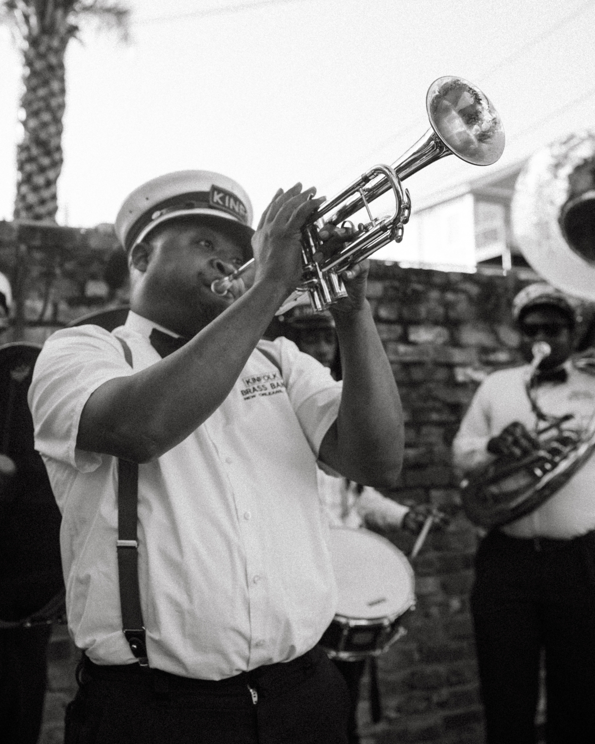 One of my favorite parts of our wedding was our jazz band, Kinfolk Brass Band, who played during our cocktail hour. They are very well known in New Orleans, and the live jazz was the perfect way to set the mood for the evening. New Orleans is actually considered the birthplace of jazz, so we knew we had to incorporate it in some way.