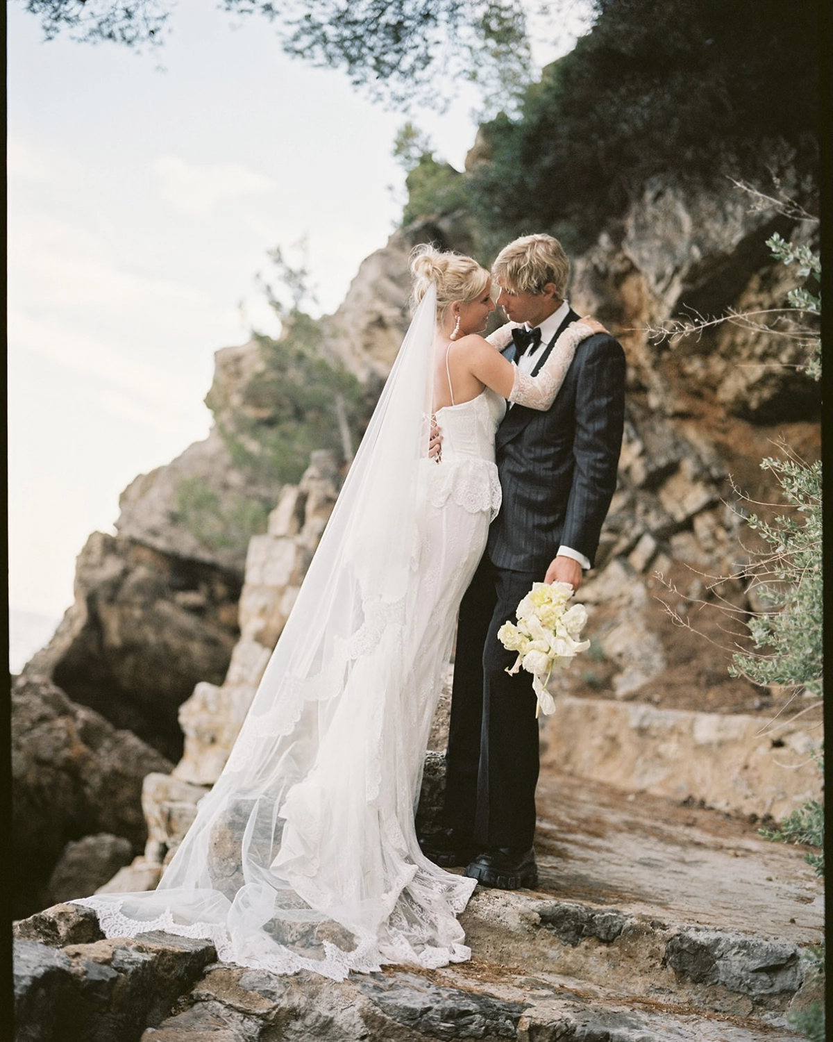 Kennedy and Brody's beautiful love story blossomed into a truly unique wedding, made possible by the couple's creative vision. Custom wedding dress, a villa on the French Riviera, an unforgettable wedding week surrounded by loved ones — all of this was captured in film photos that are impossible to forget. The floral design created by our talented member, Tepee Sauvage, perfectly matched the aesthetics of the event. Below, you will find an interview with the bride and find out more about the wedding organization.