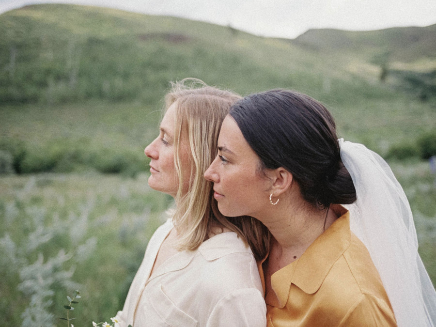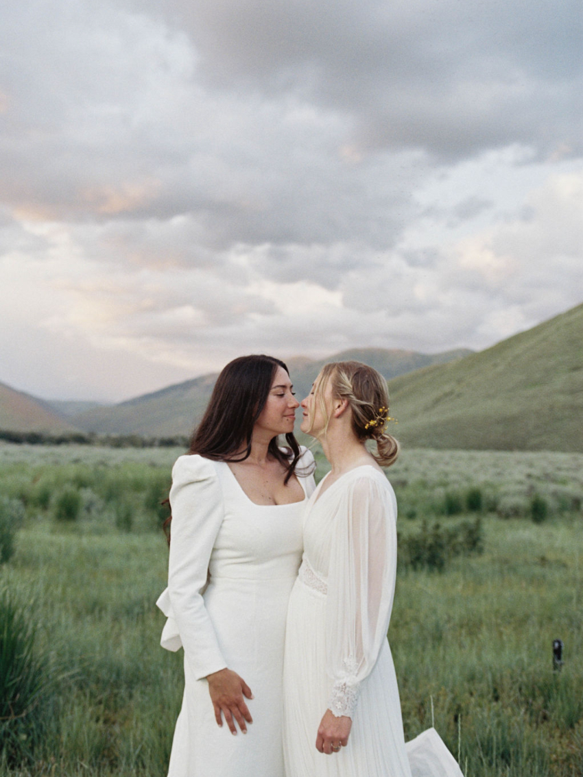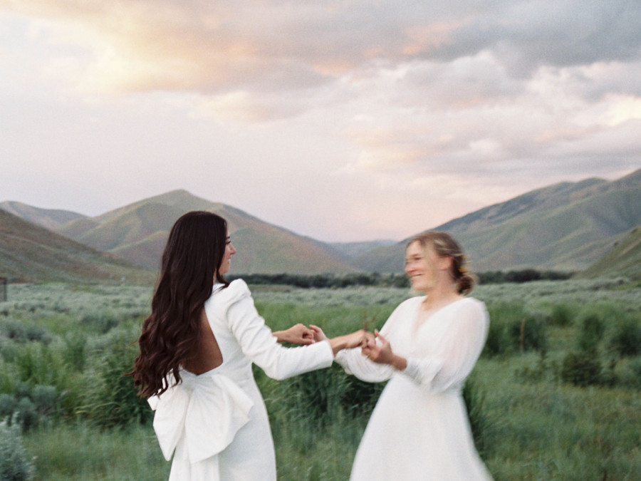 We actually met on a blind date during the summer of 2020! A mutual friend of ours set us up. Naturally, this friend was the officiant at our wedding. Jeannie was living in Ketchum, Idaho, working as a high school English teacher and had come home to visit her family who live in Salt Lake City, Utah, where Kenya was living at the time. Kenya had moved back to the states from Australia a year prior and had just finished her “year of no dating”. Little did she know she'd jump back into the dating sphere for the last time! Both of us went in with low expectations, but we ended up staying up all night talking! Well, mostly making each other laugh. That's our mutual hobby: Laughing. Otherwise, Kenya loves baking, acting in local theater productions, and hosting little events for our friends. Jeannie loves telling stories, listening to audiobooks, and spending time in nature.