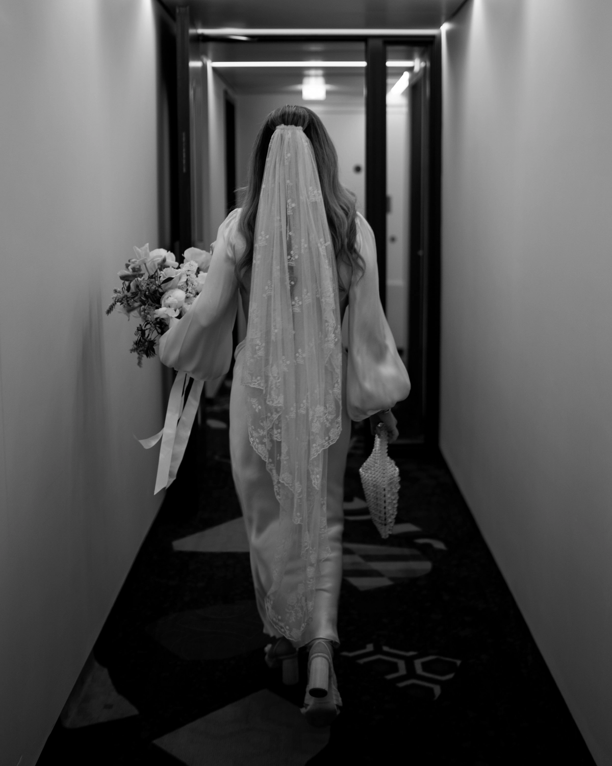 She tracked down something near perfect with Australian brand, Shona Joy. She wore their cut out, balloon sleeve La Lune dress in cream, which she had altered to have button cuffs put in and the hem taken up (she’s 5”3’ so even the midi cut was dragging on the floor!).