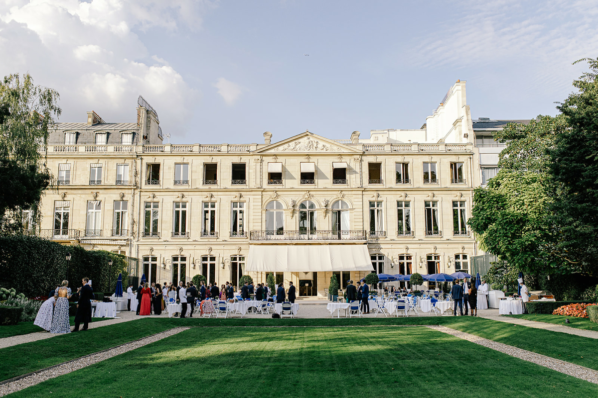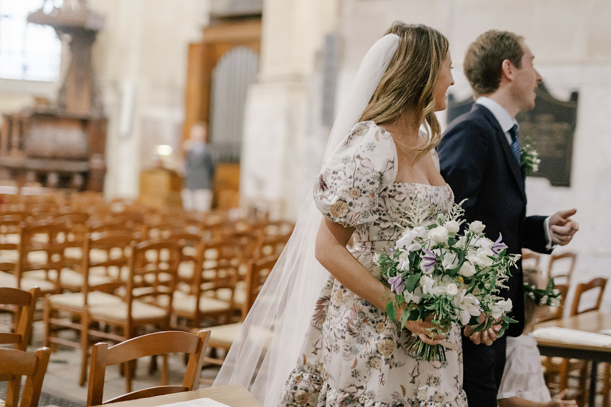 I took the opportunity to have a bit of fun with my dress. I had admired a Markarian dress for a very very long time and it felt like the perfect opportunity to wear it. It felt classic but with a modern twist and absolutely matched the venue perfectly. For the church, I decided to wear a veil. My mom bought the veil actually. Edouard wore a suit from an English company named Hackett since he is half English and half french.