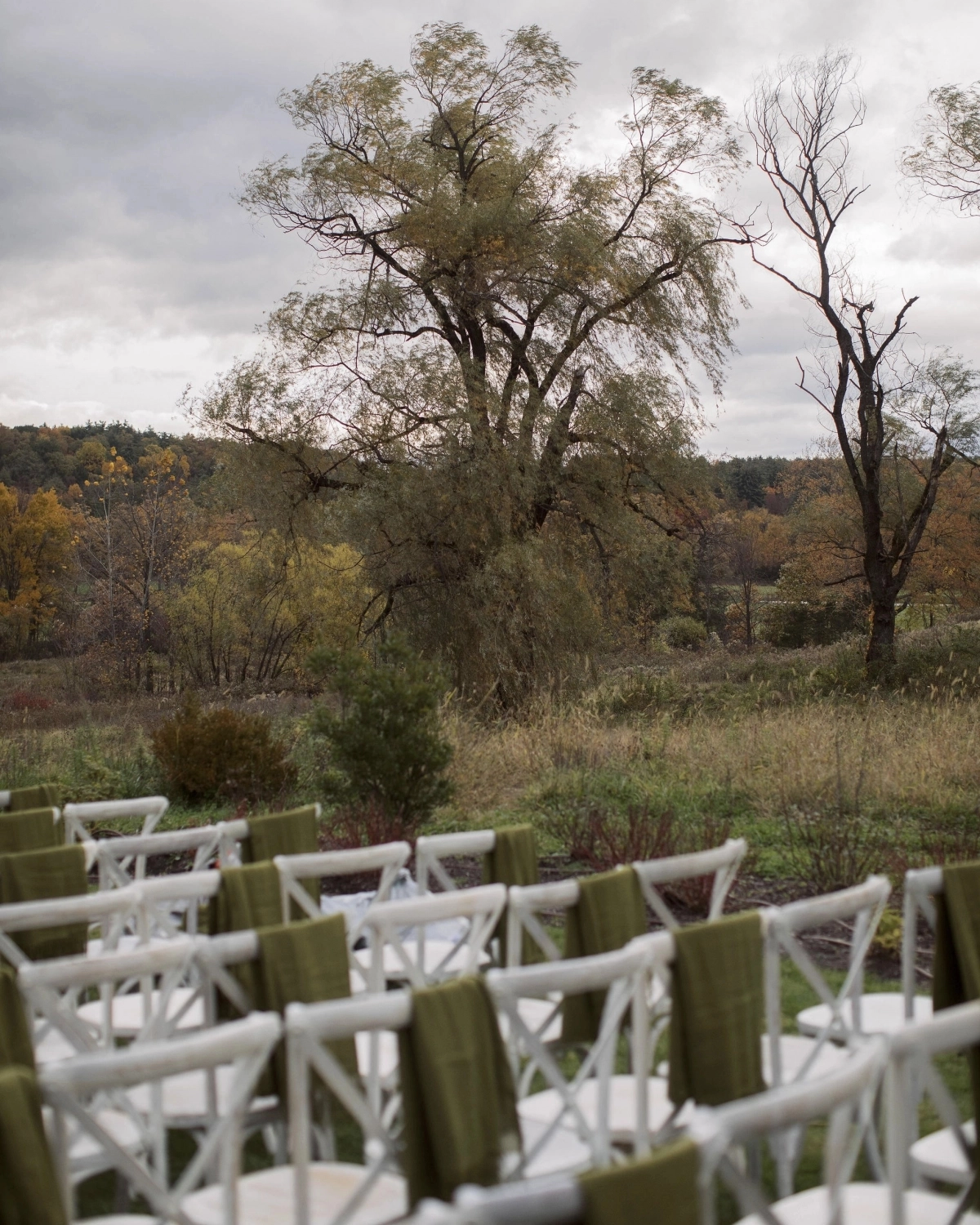 Our wedding was at Inness in Accord, NY. Our favorite place in the world is Colorado and we got engaged there — we wanted to recreate a similar outdoorsy feel for our wedding without having everyone schlep out there. Inness really reminded us of mountain life and is pretty close to our home in NYC. We also wanted many of our guests to be together for the full weekend and feel like they were having their own cozy getaway — Inness has these gorgeous cabins + a farmhouse which housed our closest friends and family and allowed us to bring that vision to life.