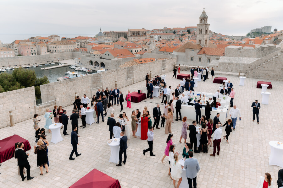 We said ‘I do’ in the church of St. Blaise in the heart of the Old Town in Dubrovnik. Because St. Blaise is the patron of Dubrovnik, the church has great spiritual significance for us citizens. After the ceremony, we went to Fort Revelin better known as Culture Club Revelin. We had a welcome drink on the terrace above with a panoramic view of the Old Town. After that, we had dinner and a big party inside.
