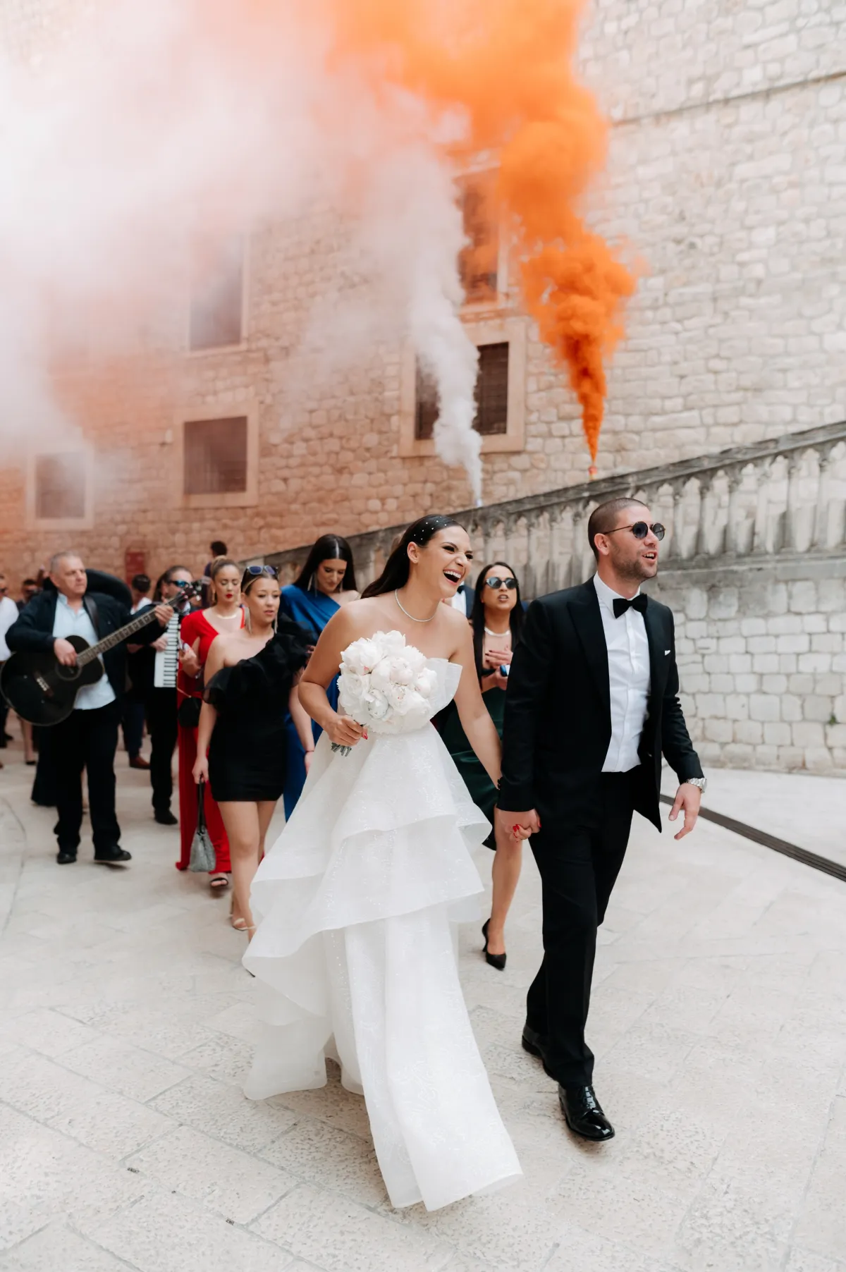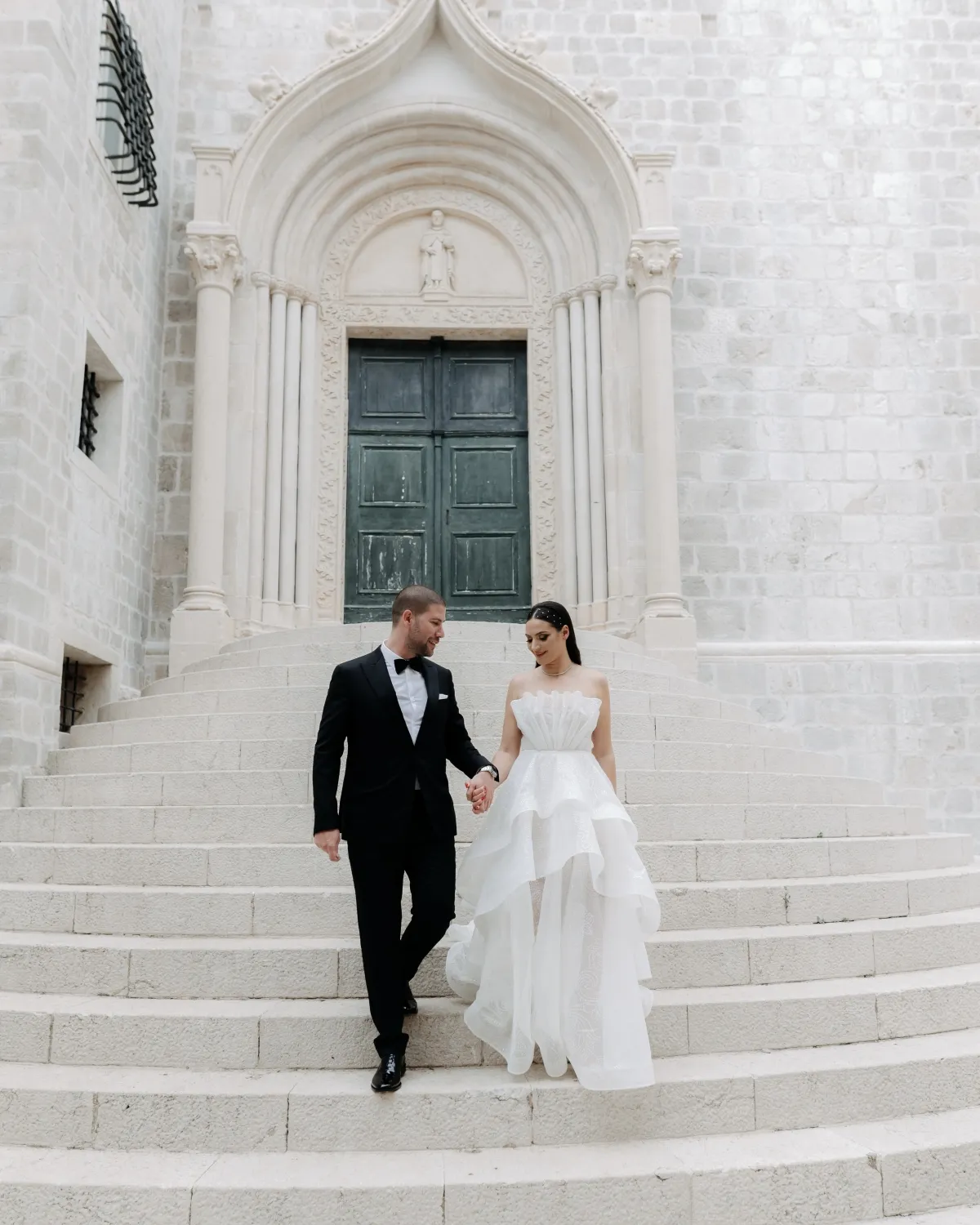 Monika and Toni are from Croatia. They decided to host their wedding of 450 guests in the heart of the old city of Dubrovnik. First, a ceremony in the basilica, then a champagne reception inside of Dubrovnik's iconic fort with a breathtaking view of the sea, and finally a wedding reception in a medieval fortress that turned into a club once the sun went down. We talked to Monika about all the wedding details as well as her love story with Toni.