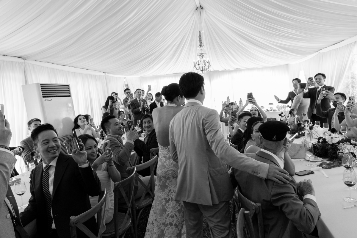 Before Covid, Grid and I use to visit Vietnam at least once a year, each time exploring different cities. So Vietnam holds a special place in our hearts. Last August, Grid surprised me with a trip to Amanoi in the province of Ninh Thuan, Vietnam, which was absolutely beautiful and secluded. On the second day, he took me to a quiet beach, where it was just the two of us. He then told me to look out at the sea. Confused, I turned around to ask him why, only to see our friend P’Ped, who is also a photographer, jumped out from behind a shrub and quickly duck back behind. In that moment, I knew what was about to happen and to have our friend capture the moment for us was very special.