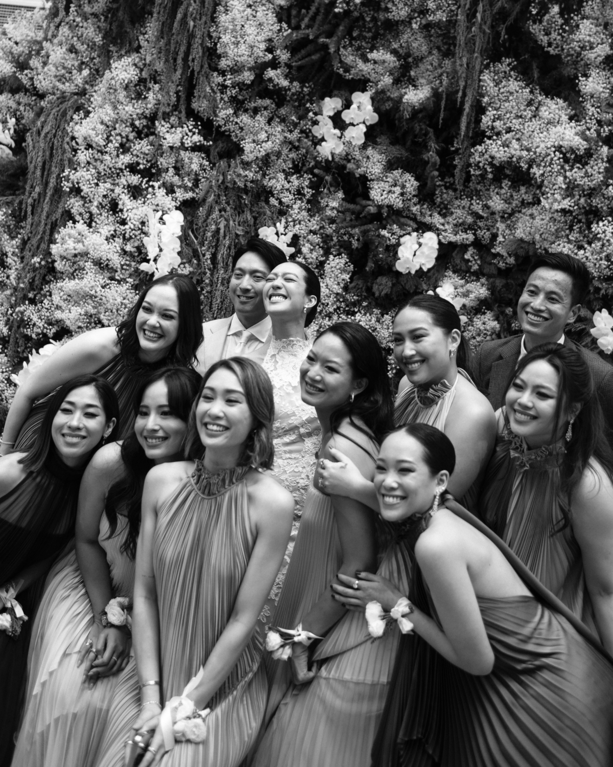 Kem Issara's creations for my bridesmaids’ dresses were truly exceptional. We had previously discussed my request for the bridesmaids to be able to wear the dresses again, beyond just this occasion. Hence, we opted for different colour variations and styles for each of them, while incorporating Kem Issara's signature pleated texture to unify them. Additionally, she crafted my stunning after-party dress to go with my bridesmaids’ as well.