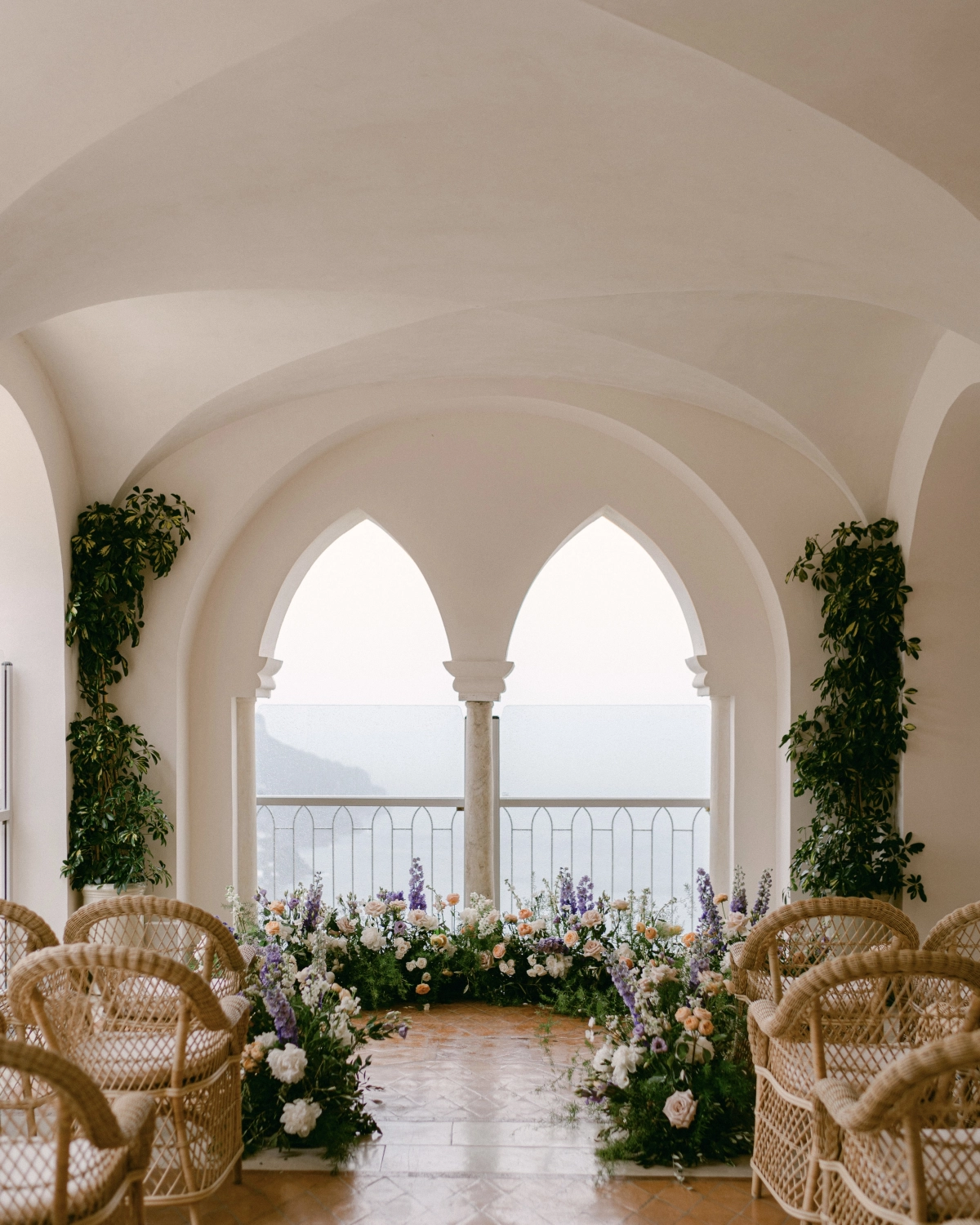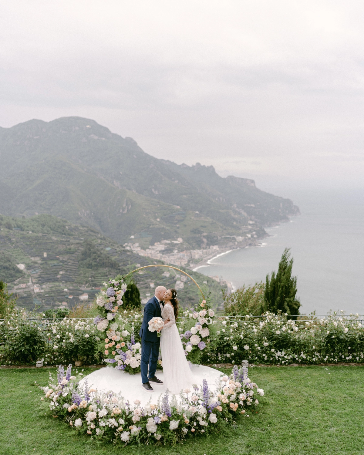 Hotel Belmond Caruso has a beautiful garden with olive and orange trees and incredible view to the sea coast, because Ravello is located very high above other villages of the Amalfi Coast. So I felt like we are going to get married between the sea and the sky in the green romantic gartens when the fairies will dance around us and the mountain winds will hear our wedding vows together with our guests. At the same time Caruso is a very old classic Italian villa rises above the crowds, so our wedding was planned to be a very classy, elegant, sophisticated and at the same time a magic event, where the the people from different countries coming together like a winds from every corner of the planet where they all gently connecting to ones for a very special moment of our union.