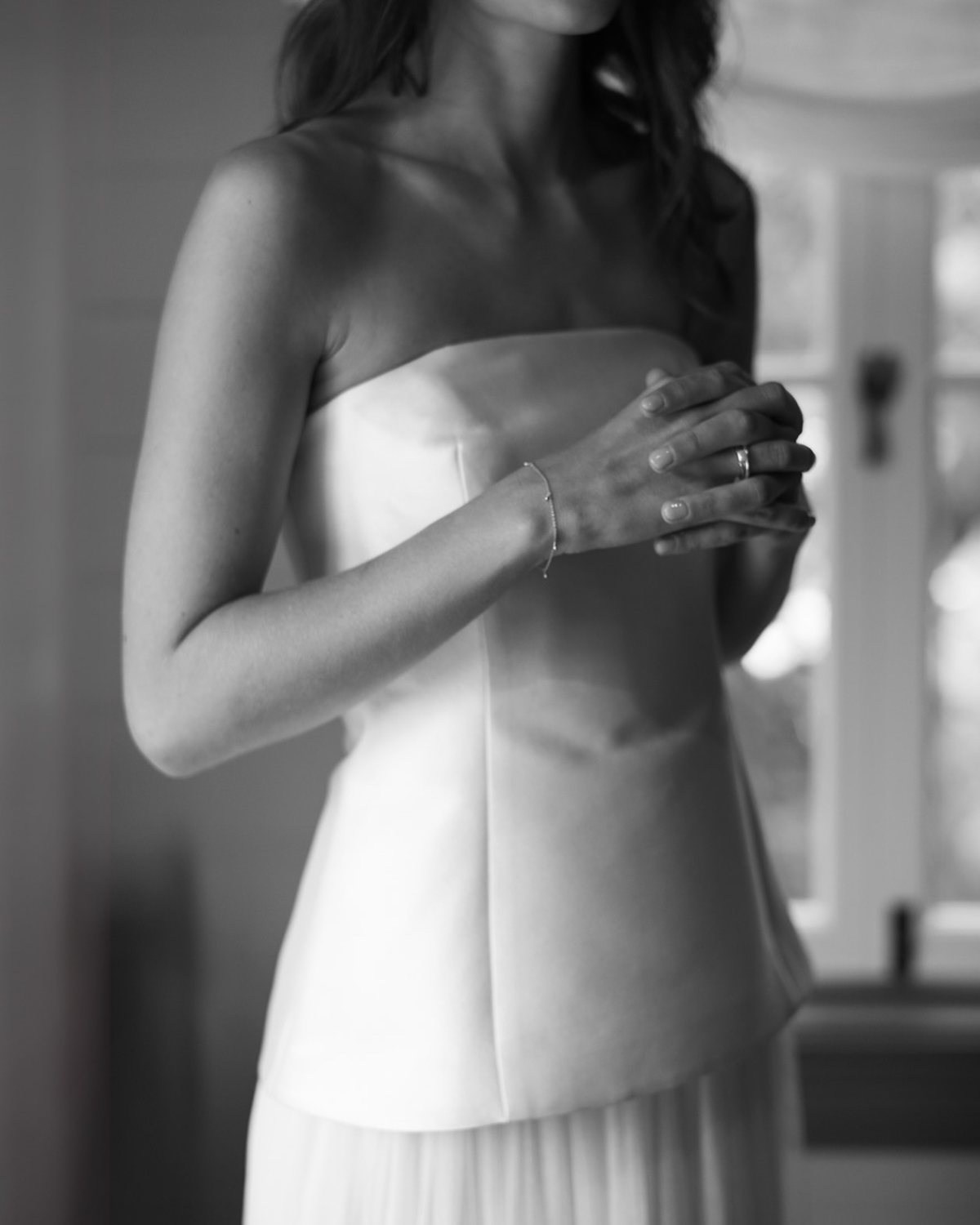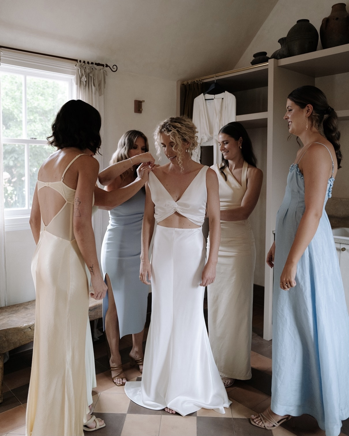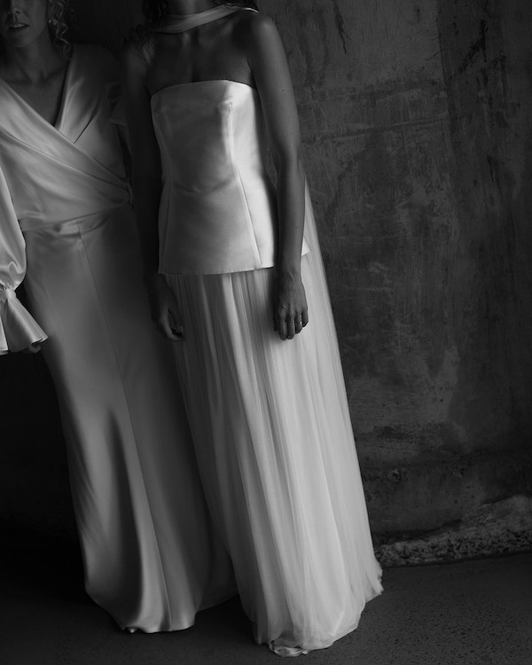 I was lucky enough to work at Prea James Bridal for 3 years. There was no doubt that Kayla and I would both wear Prea James to our wedding. We both tried on our outfits at the Paddington flagship store in Sydney where they have all the Prea James styles for you to try on from all her collections. I was spoilt for choice working with Prea and she was always showing me new designs. When I saw the Yolanda gown from Prea's Demi-couture collection I knew she was the one for me! The construction of the gown is just perfection and the silk tulle is so soft and light, it was such a dream to wear. I loved the addition of the silk neck scarf and think it added a chic little element to the look.