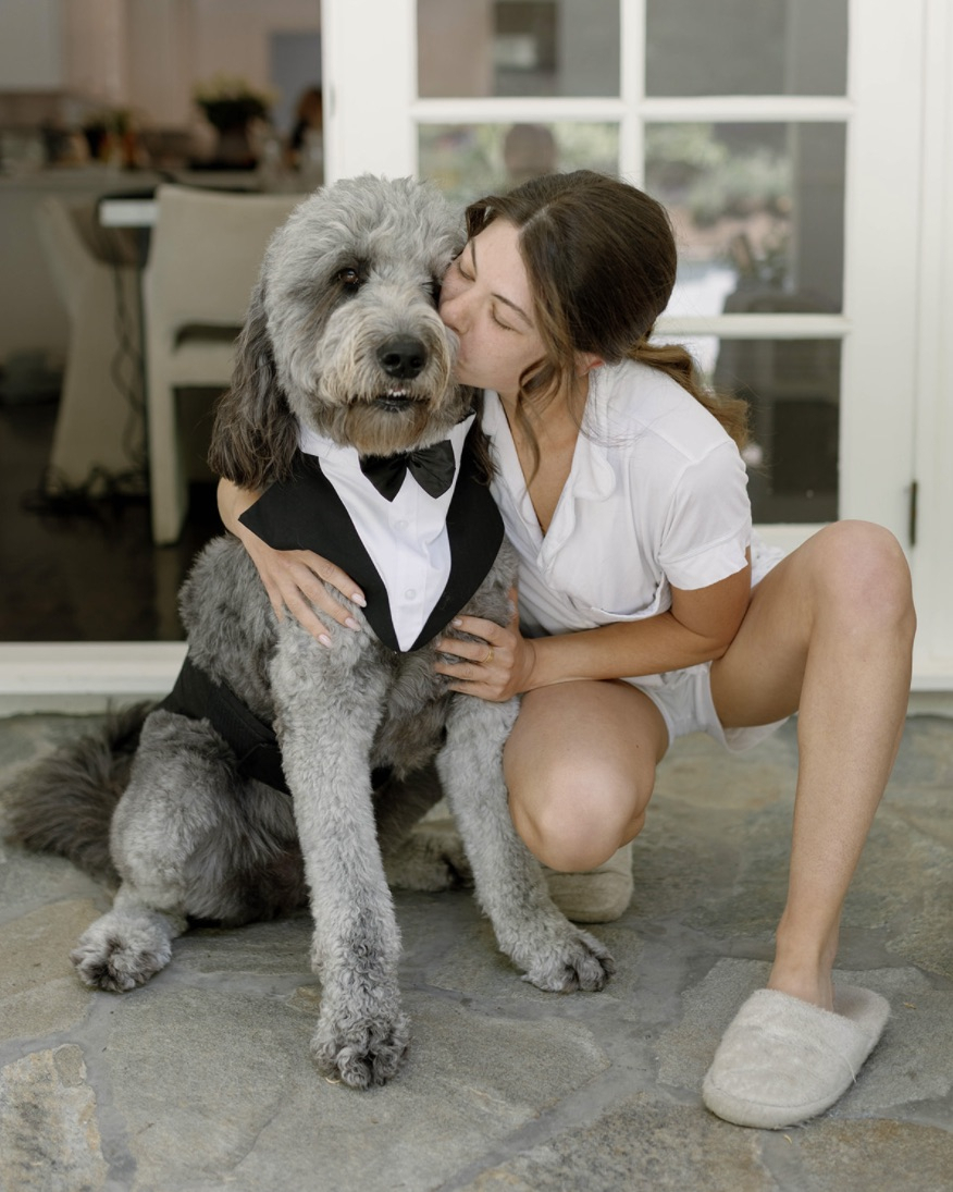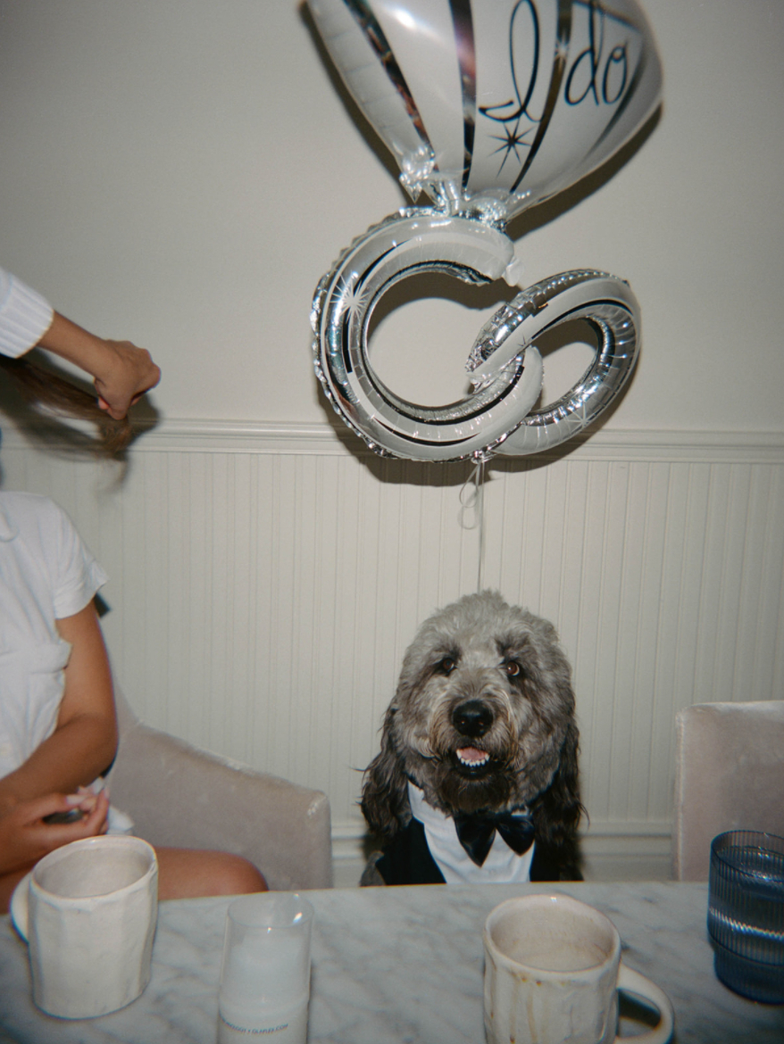 Just before our 10-year anniversary, 1.5 years after his dad passed away and 1 year after officially living/owning this house together, Arya was ready. He proposed three days before our 10-year anniversary. He tried so desperately to get me to Rosewood for the proposal he had planned, but I really wasn't in the mood. It was pouring with rain, and I didn't want to spend the weekend inside the bungalow while it rained. I refused. Little did I know that he had a whole plan to propose with flowers and a photographer (oops). We both woke up on that Friday morning, and I got ready for work, started making my coffee, and Arya started putting on a suit. I said, "What the heck are you doing?" (he works at a warehouse, he normally wears shorts or sweats and a t-shirt). He told me he had a big meeting and asked if he looked good. I told him there were stains on his shirt and he looked like a freak, so I picked out a new outfit and told him to leave so he wouldn't be late. Suddenly he changed his mind and told me the meeting wasn't until noon, so he was staying for coffee. As I was making his coffee, he went into our backyard and took our dog (who was just perfectly groomed and blow-dried) into the pouring rain and started screaming at me that there was a bird, and I needed to come. I really wasn't down, so I acted like I couldn't hear him. He came inside (now soaking wet) and dragged me outside, got on a knee, and proposed with our dog kneeling next to him. It was perfect.