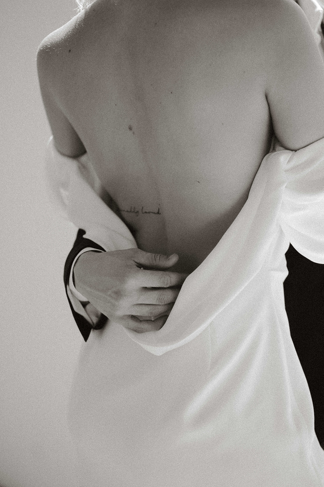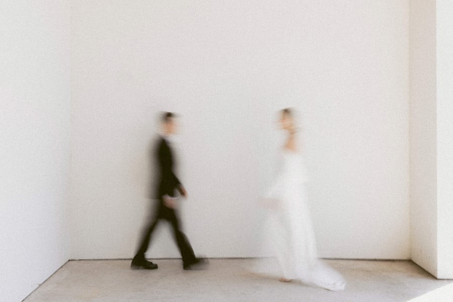 I’ve had a wedding board on my Pinterest since I was 16. Over the years it has completely evolved several times, but ultimately I just wanted something simple, modern, and true to this version of myself. I didn’t want to focus too much on trends or timelessness. I wanted to be able to look back at our wedding photos years later and relive how that time in our lives felt. If I had to name a theme, I guess I would call it “undone elegance.” I chose shades of white for almost every element, with subtle pops of a light pink and black in the stationary. The florals were the main source of color, and that was all we needed. I chose every flower and designed the florals with the help of my mom and our amazing neighbor Elida. I wanted ikebana style centerpieces, which my mom and I actually made ourselves the morning of the wedding. Elida made everyone’s bouquets, boutonnieres, and the broken arch we used for the ceremony. She understood exactly what I wanted and did the most beautiful job with everything. My goal was for the spaces to feel elegant but with a sense of ease. Like we weren’t trying too hard and left room for things to be organic and imperfect.