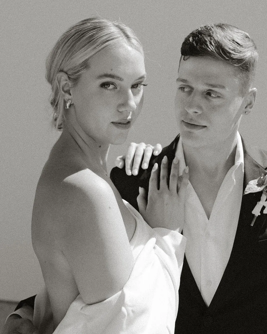 Our photographer, Valerie Thompson, was an absolute godsend. I’ve said it before and I’ll say it again: I could write a love letter about Valerie and the magic she creates with her photos. I scoured the internet for months looking for a photographer whose style I really connected with. Honestly, the second I came across Valerie’s page, I knew I was done looking. Her photos have feeling, and that’s what mattered the most to me. I also really wanted someone who was comfortable shooting film, so the fact that she used both Polaroid and 35mm made me so happy. Working with Valerie was so much fun! She shot our engagement photos and my bridals as well and made us both feel so comfortable and confident in front of her camera. She created an environment where we could just be ourselves, which really comes through in the photos. I also want to brag about my HMU artist, Maty Schafer. I’ve actually known her since I was in middle school, but I would have chosen her regardless. I kept coming back to her page when looking for a HMU artist and knew that she would be the perfect person to make me look elevated but still myself. Maty immediately got the vision when I showed her my inspo photos, and she executed it so perfectly! On top of that, she is also the sweetest person ever and made the whole process so easy and stress-free.