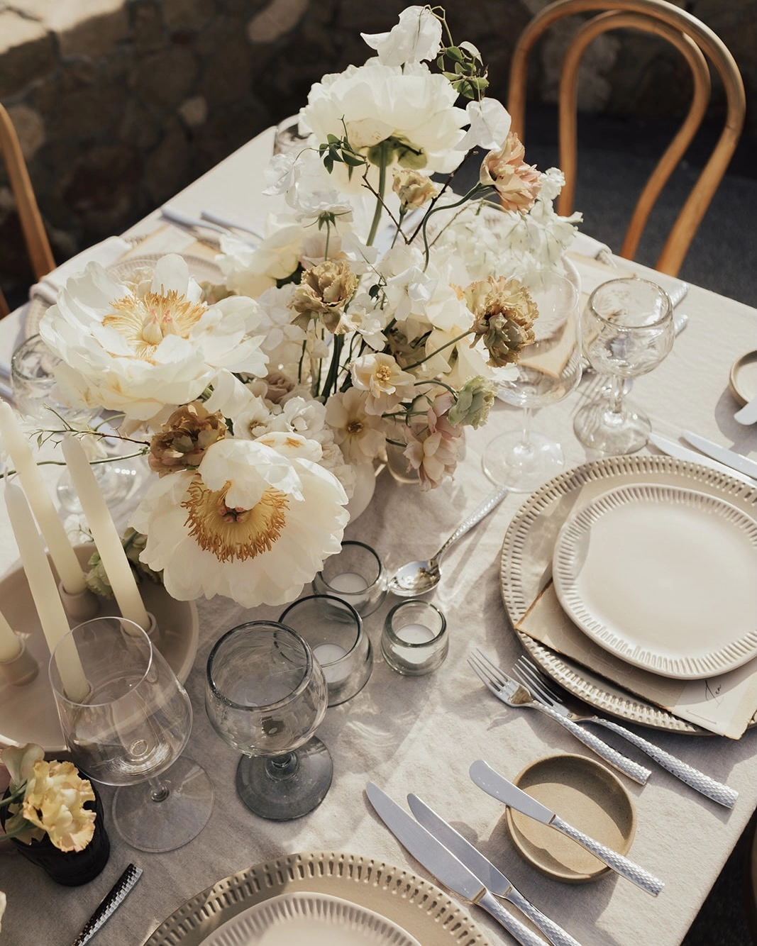 I wanted everything to feel natural yet different. The venue was artwork in itself so we needed the vibe to correspond nicely. I think I provide Marianna & Her team 1,000+ inspo photos. What we realized is that I am a flower girly. I seriously LOVE flowers. The team decided that flowers would always be the main focus of the decor in the church and on the tables.