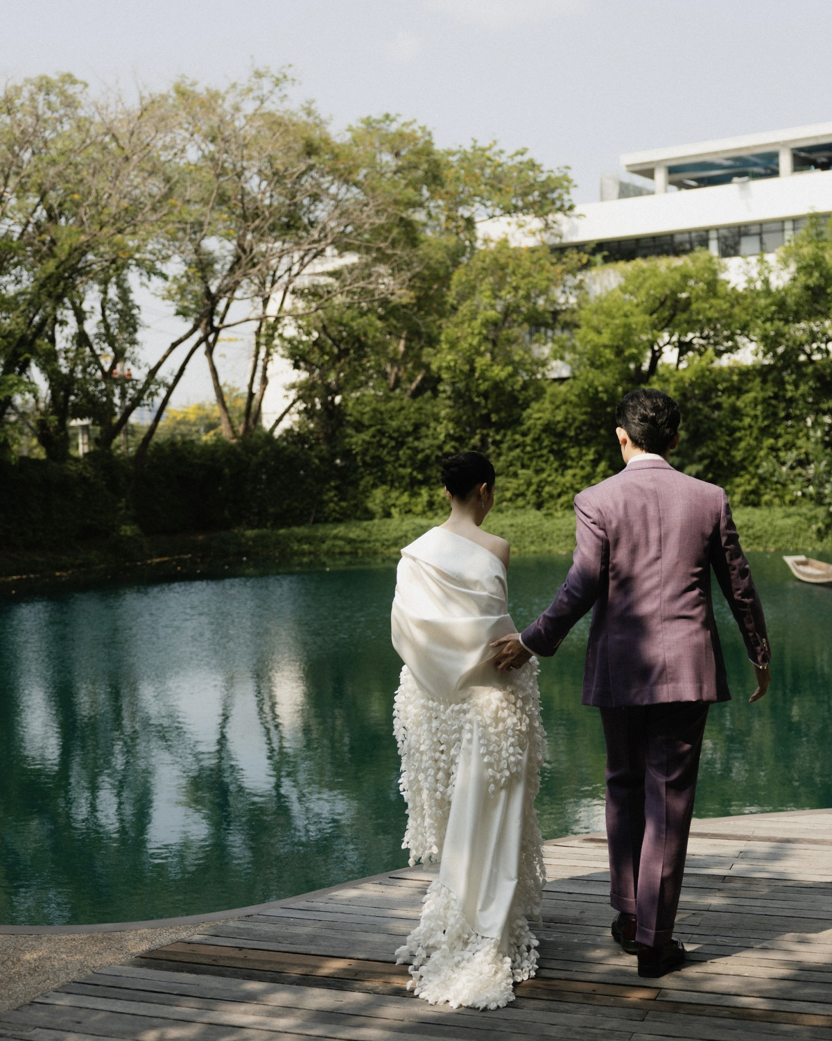 Tae and Tam's union unfolded like a fairy tale, blending the rich traditions of a Thai-Chinese ceremony with the contemporary flair of the reception to create an enchanting and unforgettable celebration. Spilling with a sophisticated chicness, every detail was steeped in a certain modern and effortless elegance. From the minimalist decor, to the garden of exquisite designer bridal gowns and the tranquil venue, every element considered with grace and intention to create a captivating fusion of contrasting elements and unparalleled beauty.