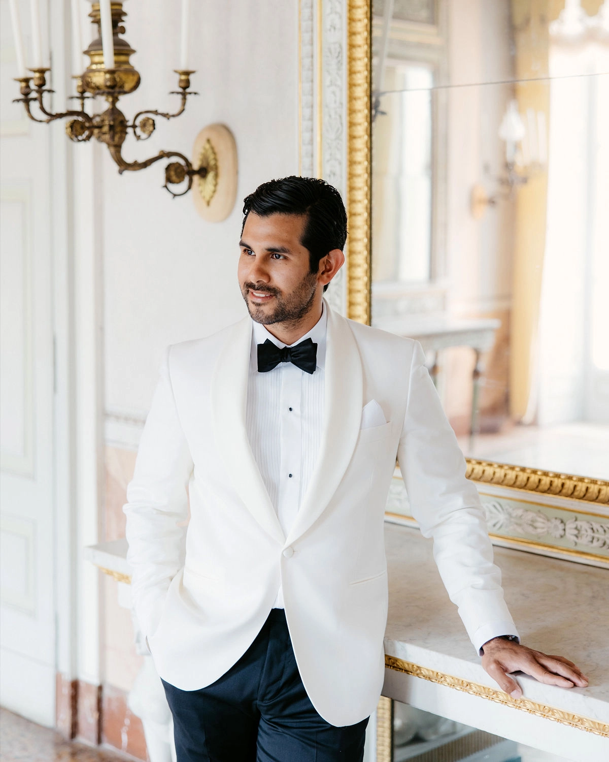 Groom-had a white and black tux; Bride-2 dresses from Galia Lahav.