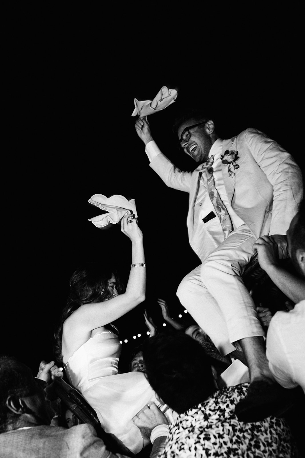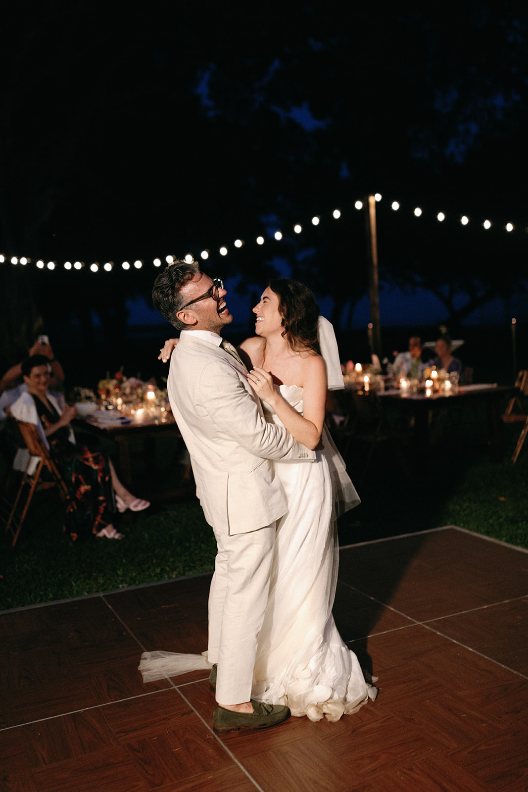 A significant reason we chose this part of the island was because the weather in that area is supposed to be very dry. May is supposed to be sunny. The weather listed sunshine all week. And then, an hour before the wedding, storm clouds appeared and poured onto all the tables. The linens, flowers, and the chuppah were all getting soaked while I had my makeup done. I was crying my mascara off and trying to stay positive. We had no backup tent booked. That morning, Wiz and I had lain on a hammock and set our intentions for the wedding, and I had said, “I want to stop lamenting how things could be and live in a grateful, go-with-the-flow state.” It was like the weather heard that and was like, “oh yeah?” I ended up calling Wiz, crying, and he came to my room to give me a hug as I was in my robe and hair and makeup. What you’re not supposed to do, but it felt so necessary. Friends and family and my baby niece also came in to cheer me up, and having everyone come together like that to commit to making the day beautiful either way felt like it gave the moment extra weight and meaning. We stalled the wedding by 30 minutes and then went for it. The rain petered out right as we came down the aisle. Fittingly, Wiz happened to walk down the aisle to “Here Comes the Sun.” The rain made the menus all wet and my hair all frizzy, but it also gave me a chance to cry and release all these emotions I hadn't realized I had bubbling up. It also gave me a chance to feel supported and loved, able to overcome forces of nature together, and just overall added to the plot.