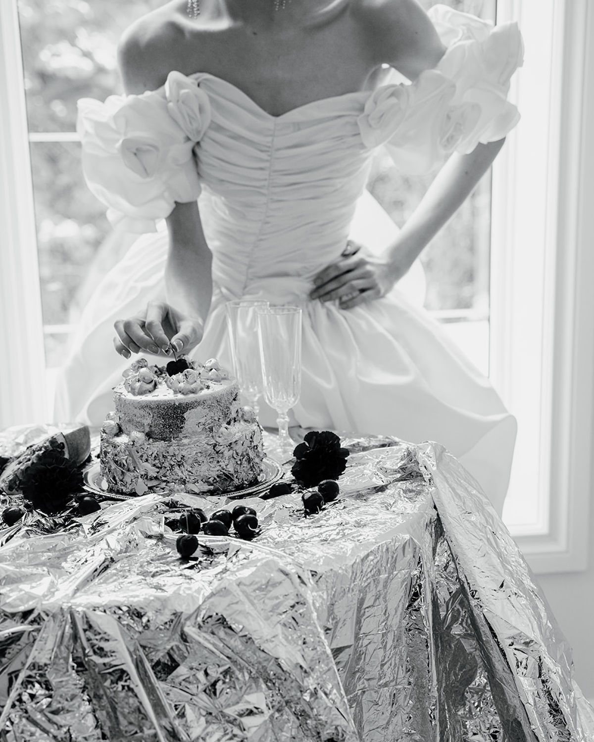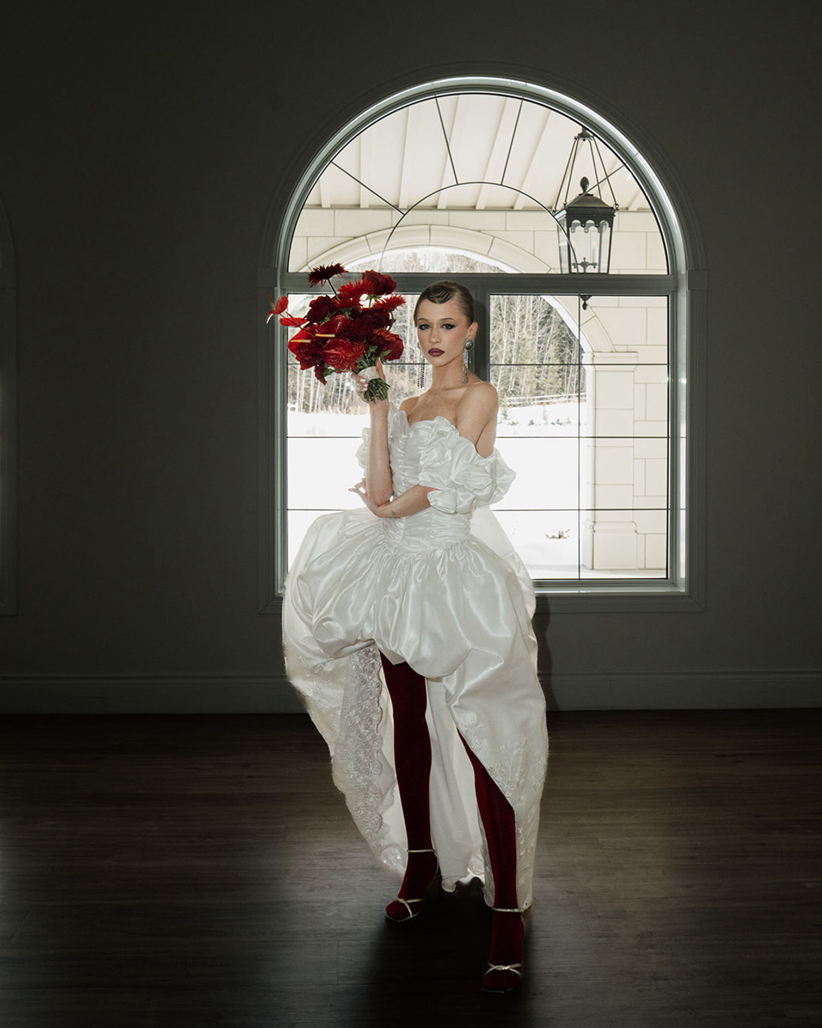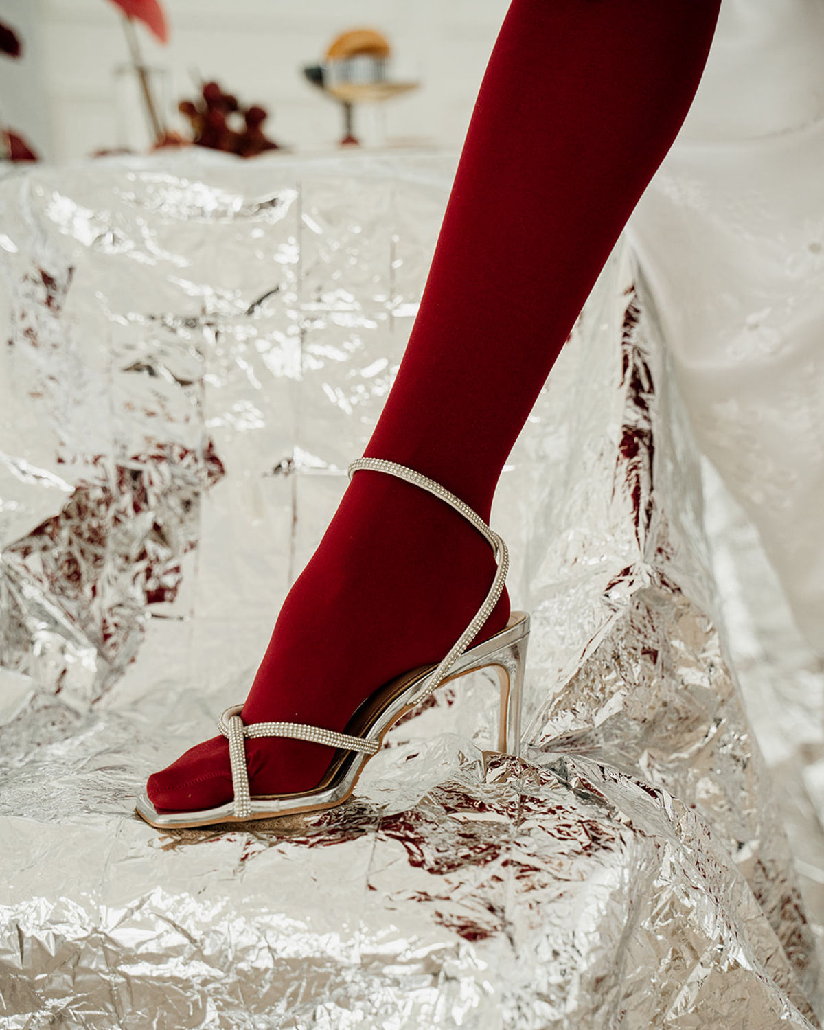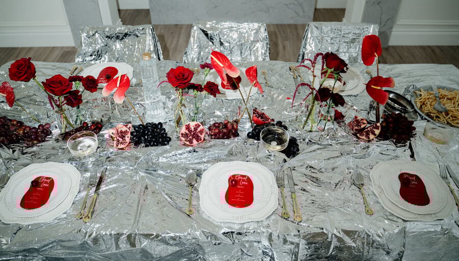 Bold, unconventional, and daring, this editorial, captured through the lens of OM Wedding Storytelling, pushes the boundaries of wedding aesthetics as we know them. Classic whites, set against a clean backdrop, clash with fierce red accents and reflective foil metallics, creating a striking contrast between timeless elegance and avant-garde edge. Sculptural silhouettes, bold textures, and unexpected details weave together a narrative of rebellion meets romance—where tradition is honored but never confined. An unapologetic expression of style, it’s an ode to fearless love and the simple joys of life, infused with a rebellious twist. Edgy, sophisticated, yet undeniably chic.
