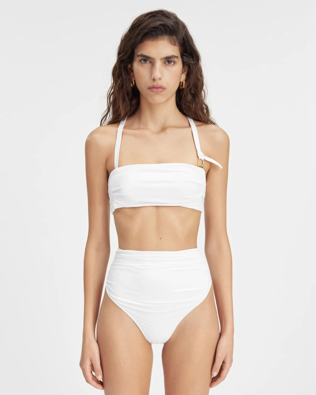 Jacquemus Draped Bikini Top, $275, and Bottom, $240