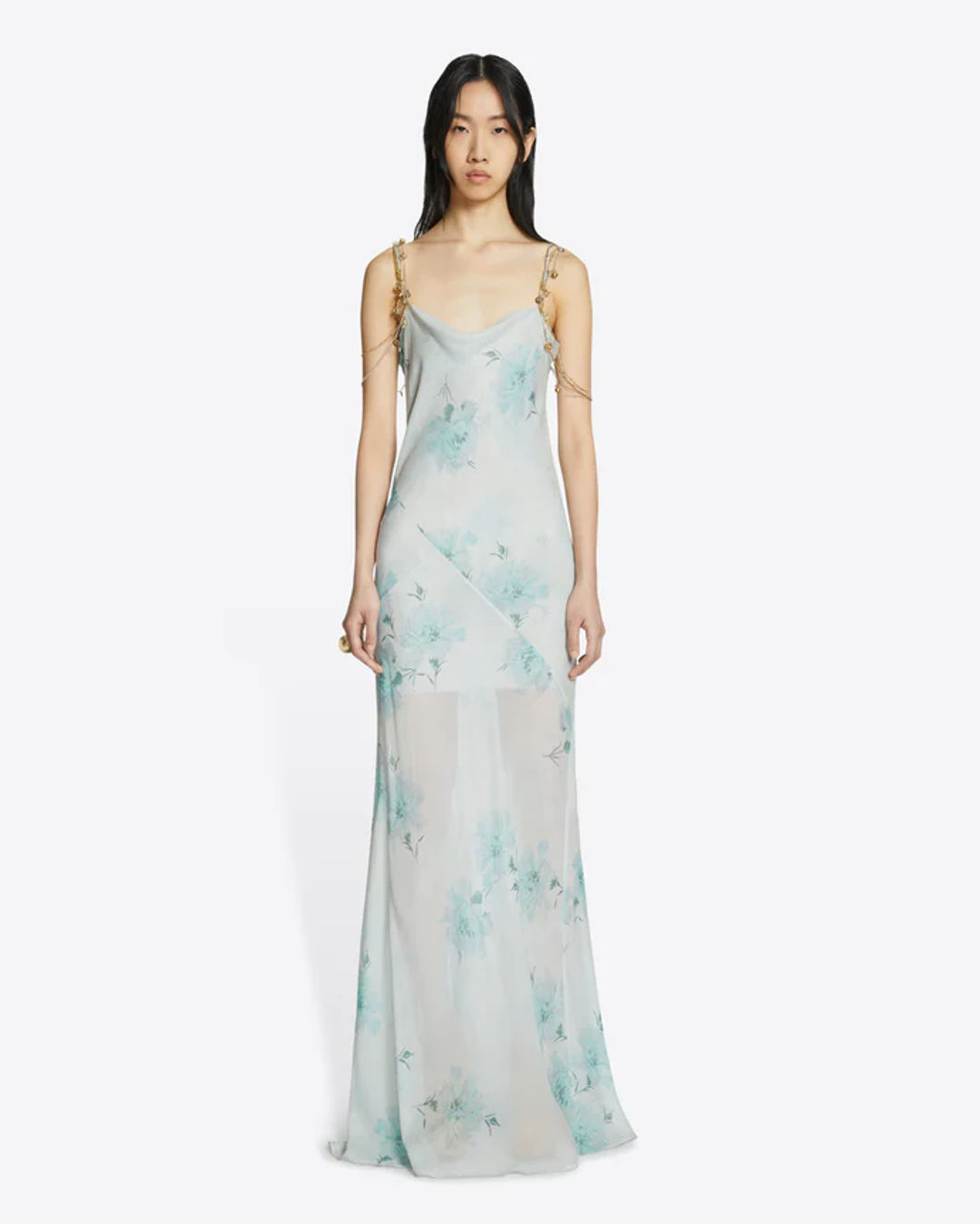 Blumarine Floral-Motif Draped Long Dress, $1,946
