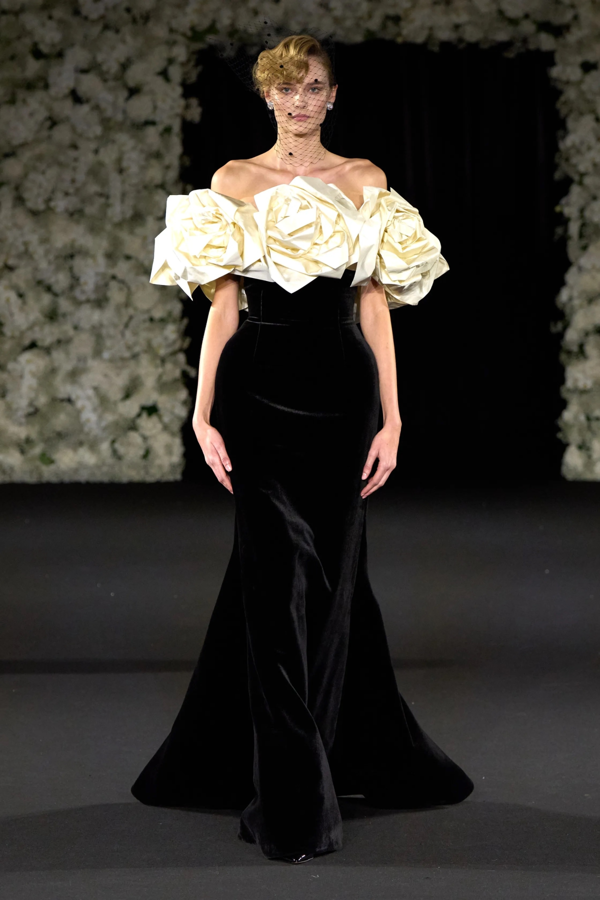 Beautiful fabrics in satin and velvet add luxury to the collection, while voluminous ruffles and layered skirts add drama and grace. In a nod to current trends, bows and flowers make playful yet sophisticated appearances throughout the collection. When it comes to color, Quinn hasn't missed a beat. From captivating reds and dramatic black to creamy neutrals and brilliant yellows, he's nailed the palette of the moment – and the seasons to come. Every shade feels vibrant and fresh.