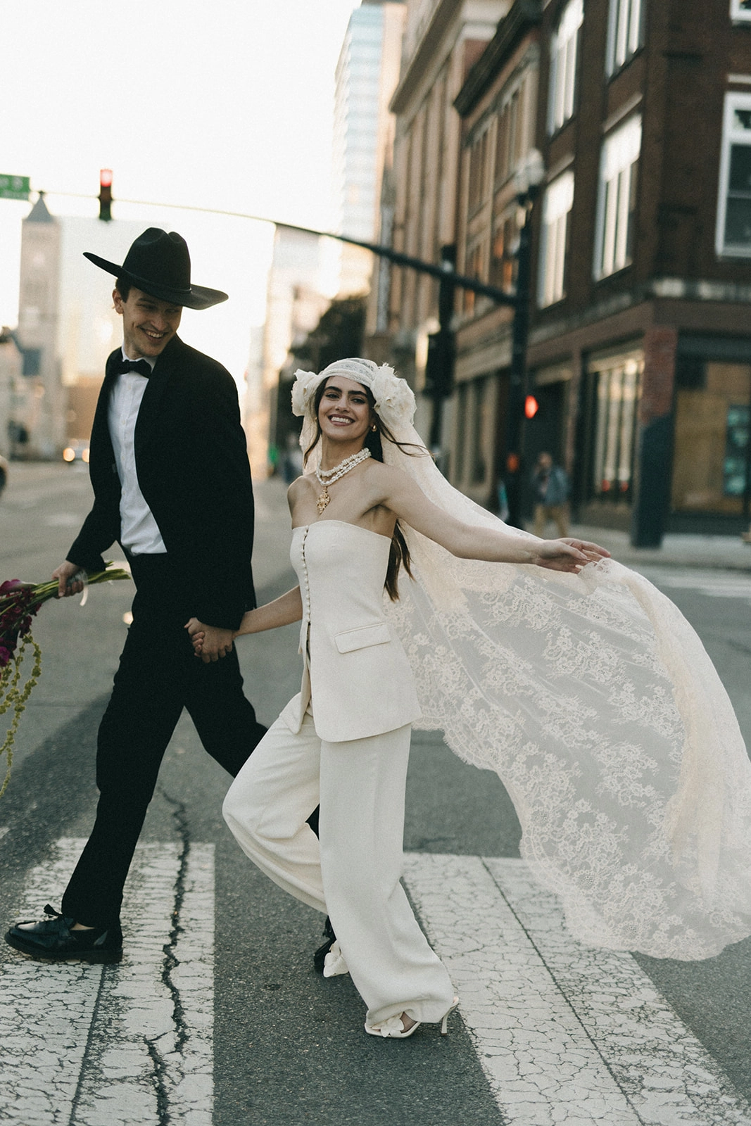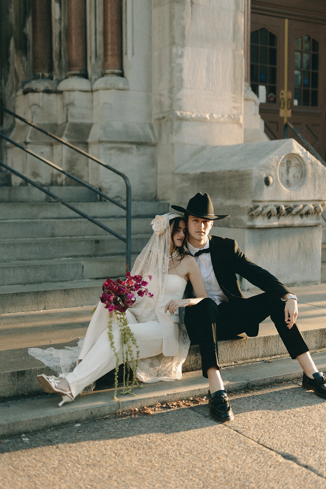 The shoot was held in two Nashville locations, each speaking to a different side of the project. First was the industrial and simple parking garage with a stunning overlook, while for the second spot, Abby chose a beautiful cathedral with whimsical and vintage elements.