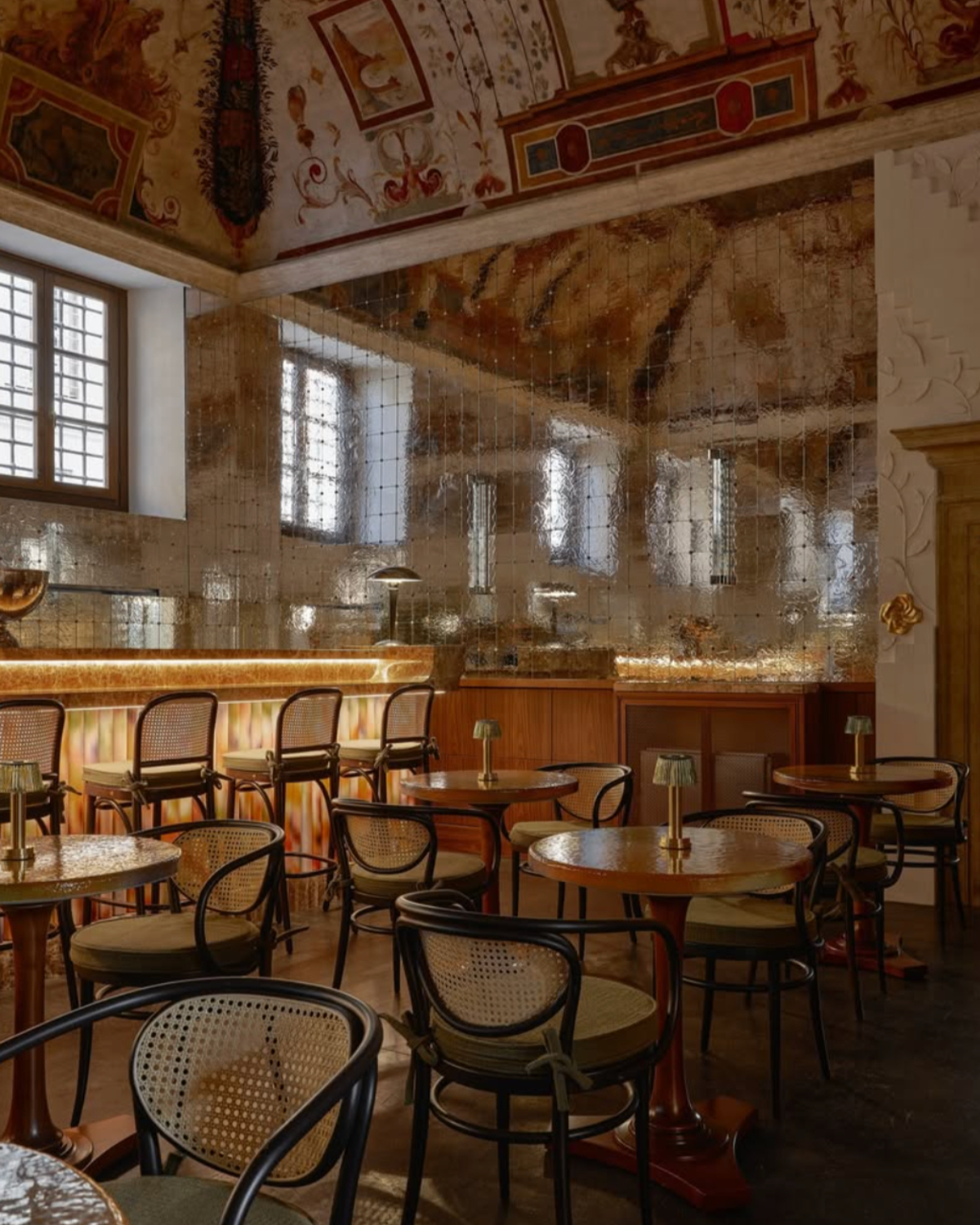 If you've been on design TikTok lately, you've probably seen Il Bar della Musa. It's inside Palazzo Talìa, a stunning hotel tucked behind the Trevi Fountain, and the whole place is a love letter to old Rome meets modern design. The bar itself has frescoed ceilings (original grotesques that nod to the building's Renaissance past), but everything else is sleek, sophisticated, and sexy in the best way. It's designed by filmmaker Luca Guadagnino, so you know the vibes are immaculate. The cocktails are excellent, the Oyster Happy Hour is a whole thing, and whether you're there for pre-dinner drinks or a full evening, it just feels cool. It's intimate without being stuffy, glamorous without trying too hard. Basically, it photographs well and tastes even better.