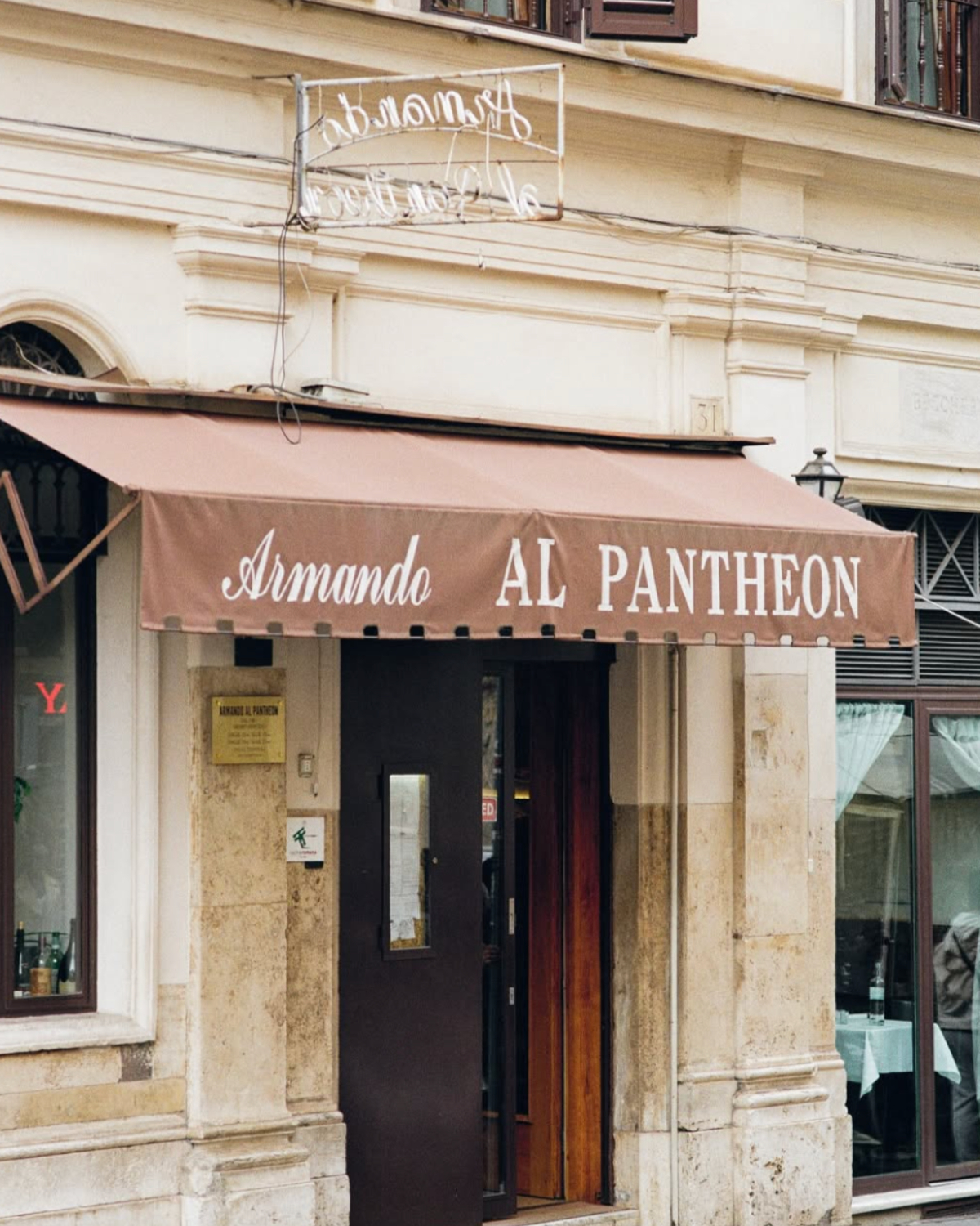 Reservations are essential here. With only 14 tables nestled under exposed wooden beams, the space feels quietly romantic before you've even opened the menu. Armando al Pantheon been around for decades, and the vibe is cozy in the best way: wood-paneled walls, booth seating, Art Deco windows that let in all that golden Roman light. The pasta is the main event (the carbonara and amatriciana are both exceptional), and the wine list is seriously impressive. The staff knows their stuff and will happily guide you through it, which is helpful when you're looking at everything from well-known bottles to more obscure natural wines. It's intimate, romantic in a low-key way, and feels like the kind of neighborhood spot that just happens to be steps from the Pantheon. Basically, it's exactly what you want from a Roman trattoria.