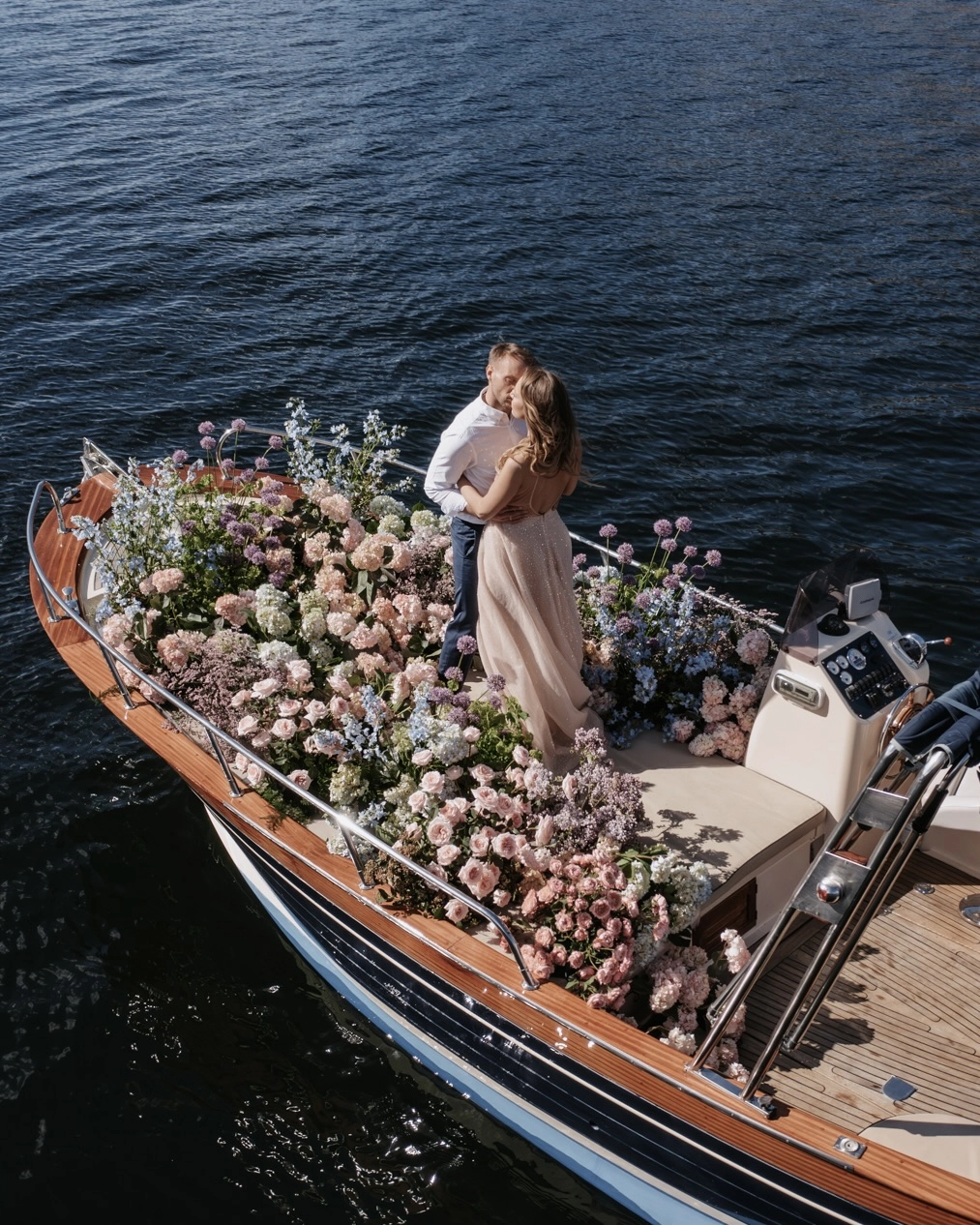 One of the standout features of the shoot is the enchanting engagement boat cruise. The couple sailed surrounded by a sea of blooms extraordinarily crafted by THE WED member Florals & Co. The beautiful symbolism embedded in this experience is that challenging moments have to be “sailed” together. The Engagement Boat Cruise, with its romantic ambiance and dreamy aesthetics, became a testament to the transformative power of love, leaving an indelible mark on this celebration and etching a memory that will be cherished for a lifetime.