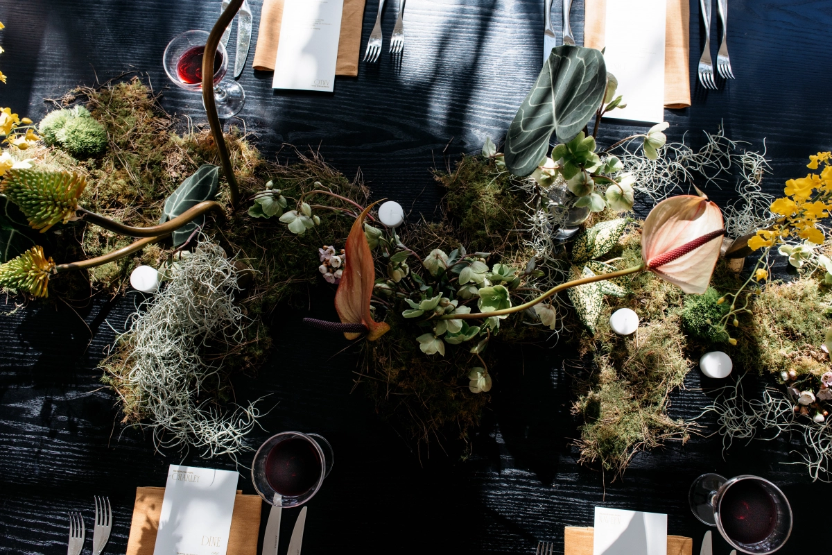 The photoshoot unfolded at the Terrace at the Royal Botanic Gardens, a breathtaking venue that perfectly captured the fusion of wild, vibrant elements with chic, modern styling, as envisioned by Charley. Being a planner and designer from abroad, she leaned on social media to connect with vendors and form her dream team for this editorial. It was crucial for Coda's Events to collaborate with vendors who resonated with their aesthetics and vision for the project.
