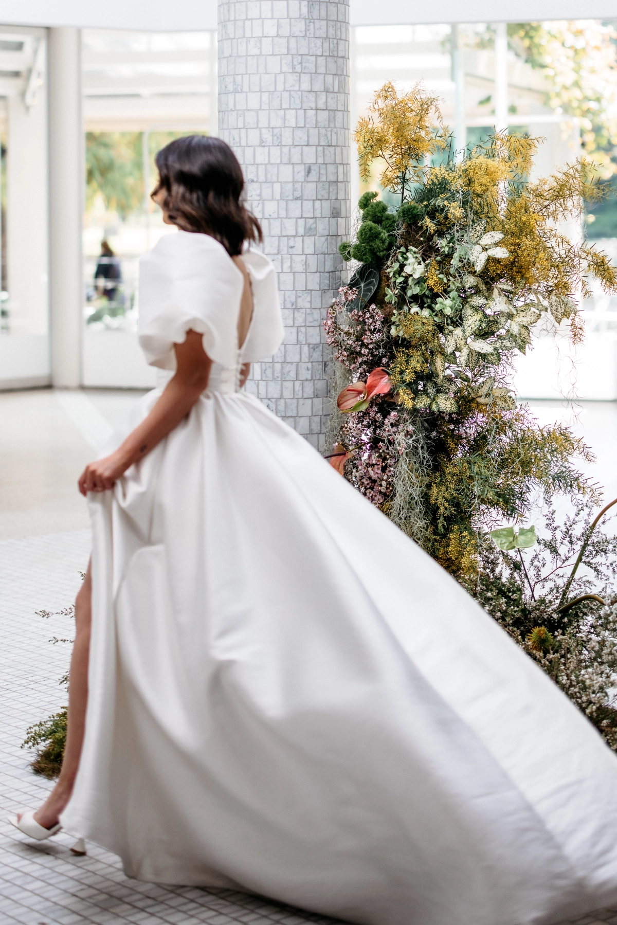 THE WED planner Charley from Coda's Events orchestrated this stunning wedding editorial, drawing inspiration from the vibrant hues of yellow which she pulled from her unique perspective on Australia as someone encountering the beauty of its landscapes for the first time. The central color of yellow was meant to embody the sun’s brilliance and the captivating sunsets, mirroring the warmth and liveliness of its people, as well as wild quality of the diverse natural habitats that adorn this remarkable land. The excess and color palette of the floral and cake design were used to reference this liveliness, while the attire, model styling, stationery, and place settings incorporated the modern and and fashion-forward essence of Melbourne's wedding scene.