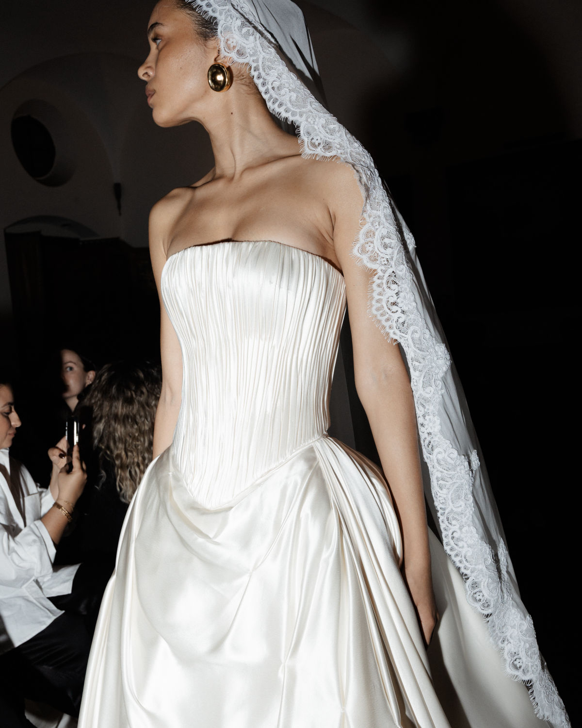 Chapter V, the latest collection from Australian bridal house Floure, unfolds like a love letter to womanhood in all its raw, unpolished beauty. Presented at New York Bridal Fashion Week, the collection blurs nostalgia with modernity, pairing hand-tacked stitches, uneven pleats, and the tactile richness of raw silk with silhouettes that feel both timeless and strikingly present.