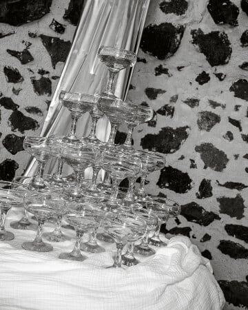 Bold and unapologetically chic, "XO Santorini" is an ode to the unparalleled beauty of Greece, styled by the editorial visionary, planner, and stylist August in Bloom. Vivid crimson tones and intricate sculptural florals harmonize flawlessly with the iconic backdrop of the Aegean Sea. The interplay of modern design and old-world architecture creates a vision that feels daring yet timeless.