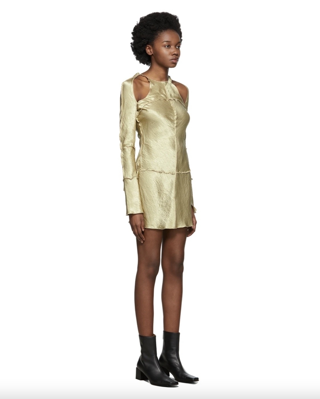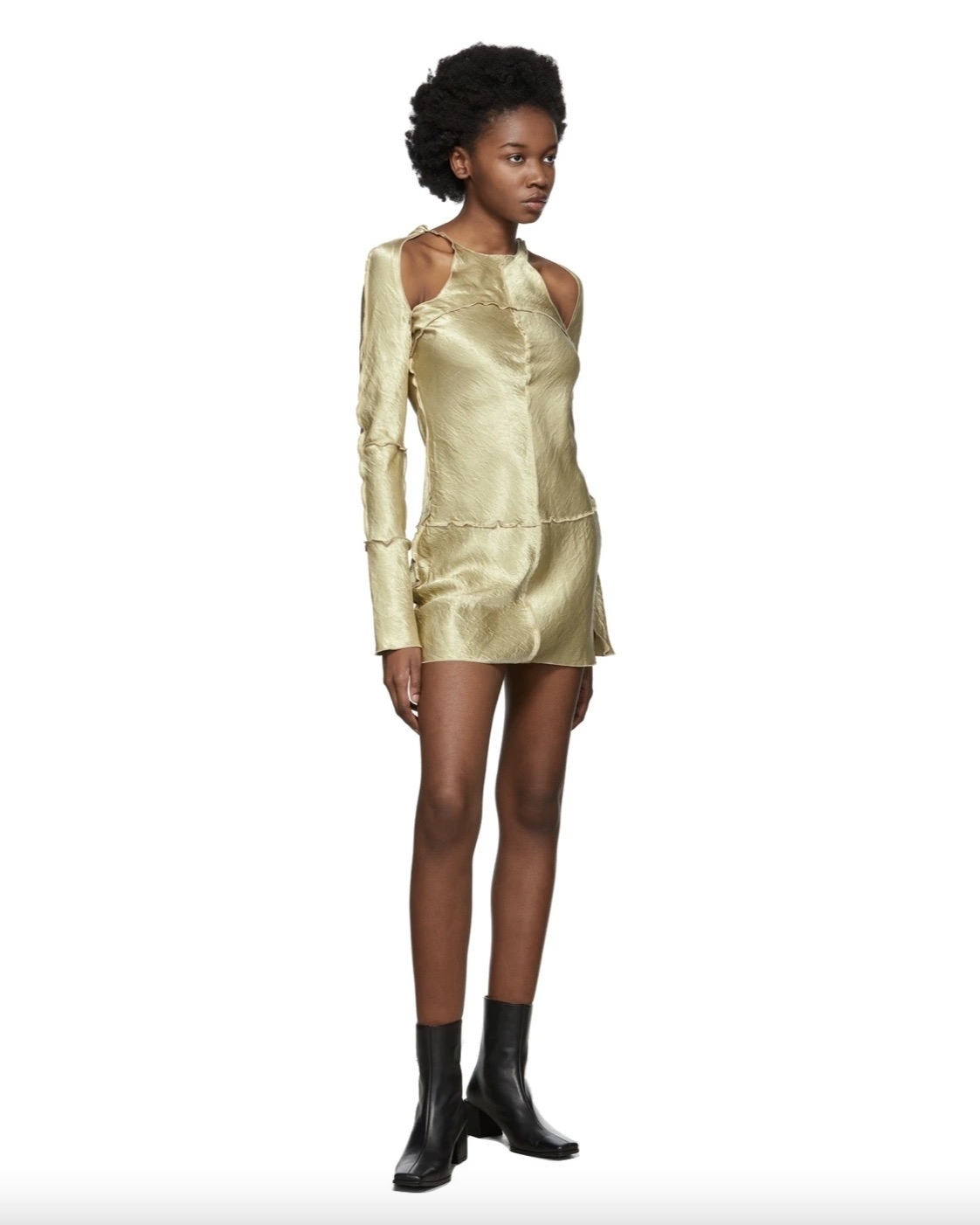 YUZEFI Green Curly Cut-Out Shoulder Dress, $525