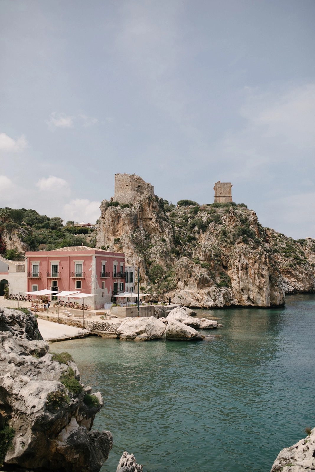 To celebrate their big day, the couple chose Tonnara di Scopello, a historic venue in Sicily with a shabby chic atmosphere. The two envisioned their wedding as a grand family feast, steeped in the finest Italian tradition. Over nearly nine months, the couple and their vendors worked tirelessly to bring the idea to life. Every detail, from flower arrangements and centerpieces to menus and fashion, was meticulously thought through.