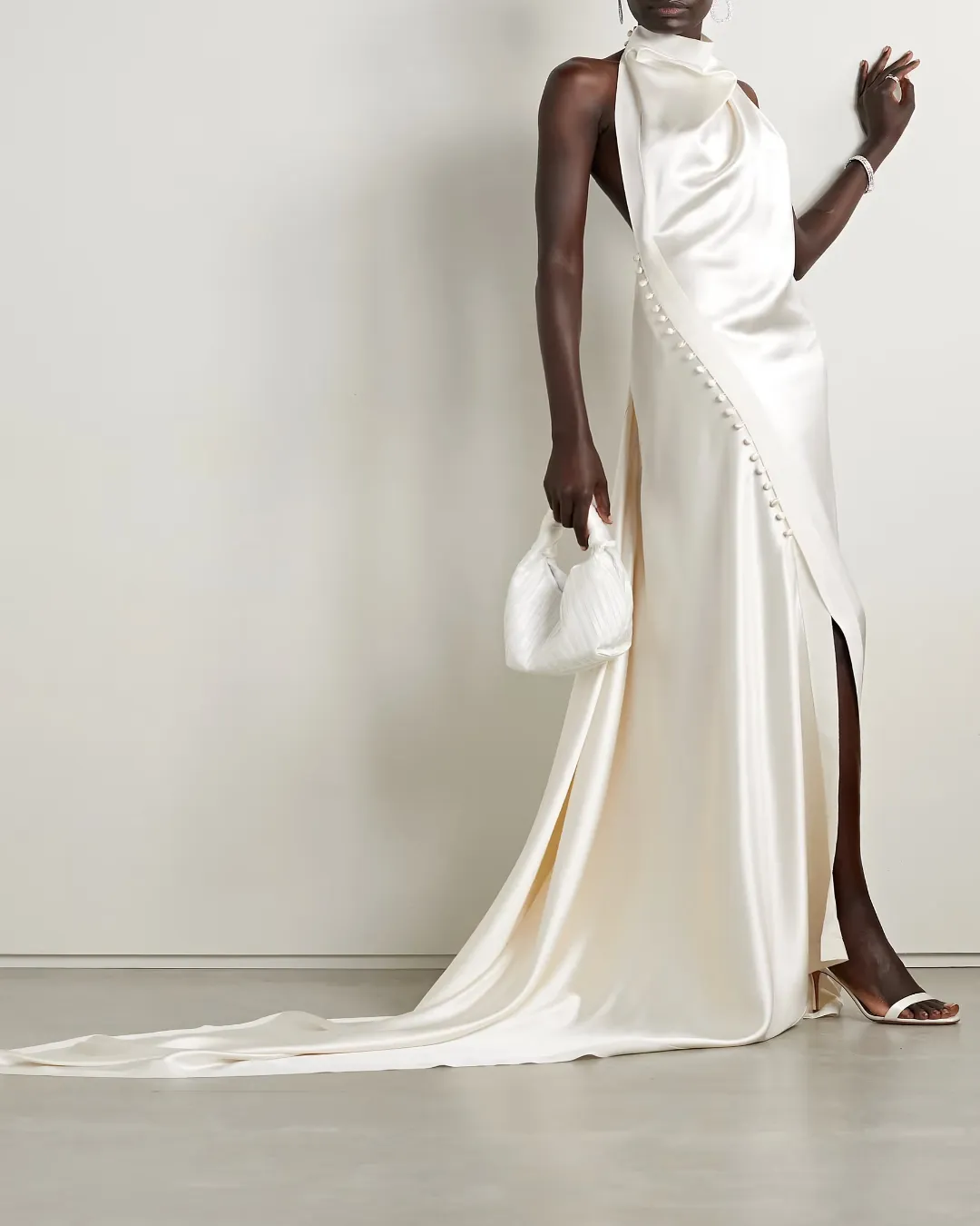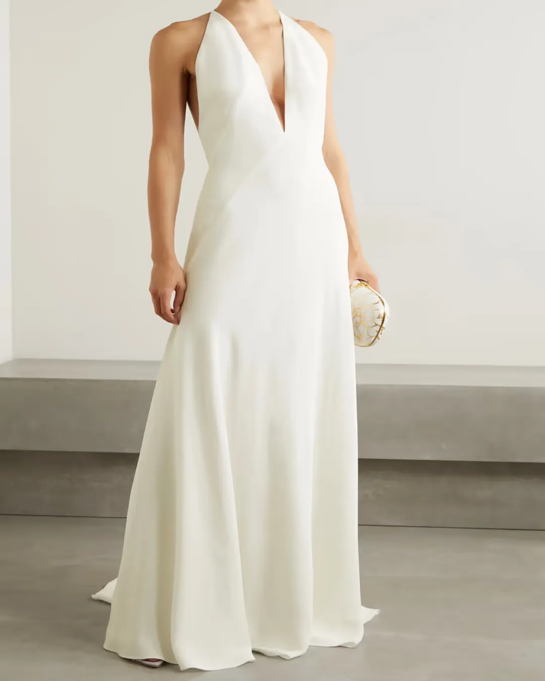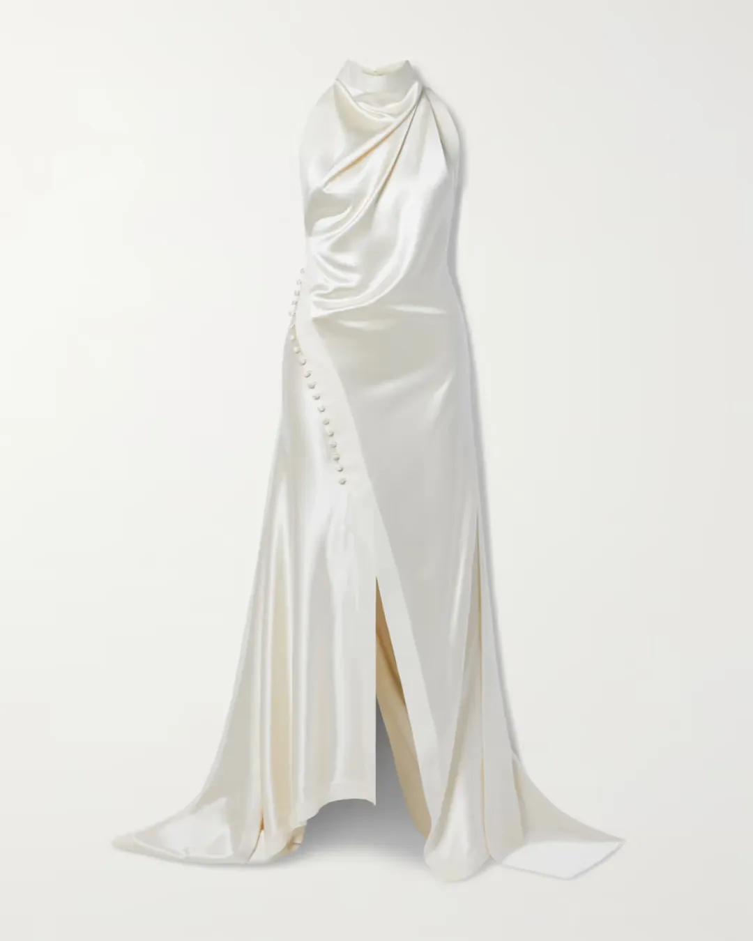 Danielle Frankel Sasha Draped Silk-Charmeuse Halterneck Gown, $3,490