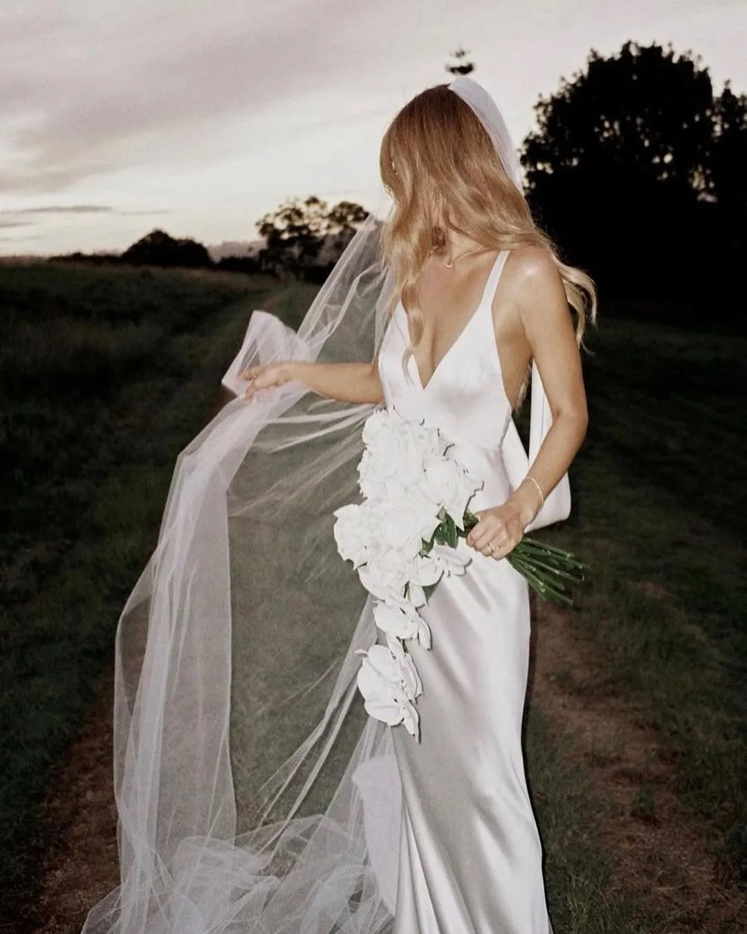 Finding the right and perfectly fitting wedding dress is what brides care about the most. True, the attire not only has to be beautiful and eye-catching but comfortable in the first place. Of course, design and style matter, so do fabrics. The wedding dress is close to the body — that's why the sensations become any bride's priority. Known for its shine, strength, and durability, silk is a win for a gown. This natural fiber is the epitome of luxury with its soft feel and elegant appearance. Silk dresses are usually very flowy and accentuate only the best parts of the body. That's why this material is so desired and loved. We picked the most delicate silk gowns to say "I do" in. Scroll down to make your choice.