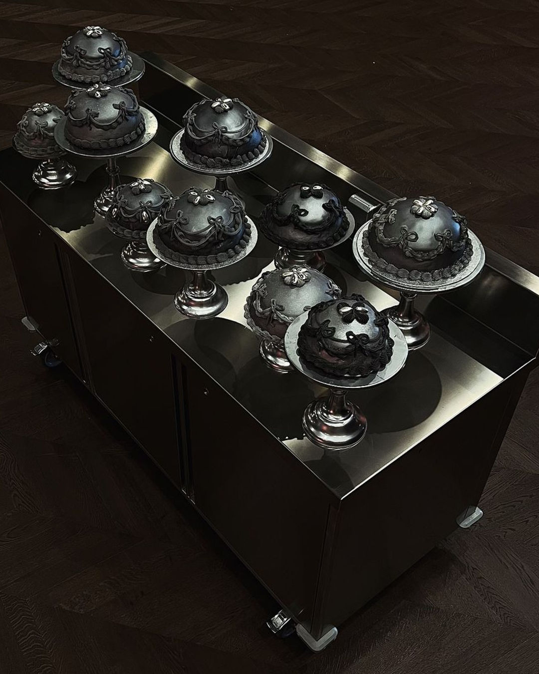 Silver color has been a major trend in beauty and fashion for quite a while now, stealing the spotlight from show to show. It's glamorous yet not overpowering, timeless yet futuristic - just the versatile choice for everything, from décor to attire. At weddings, we're seeing this trend in metallic, almost liquid-like drapery, vintage-inspired silverware, and even in food design. So why stick with a classic white wedding cake? Time to go bold and unique with silvers instead!