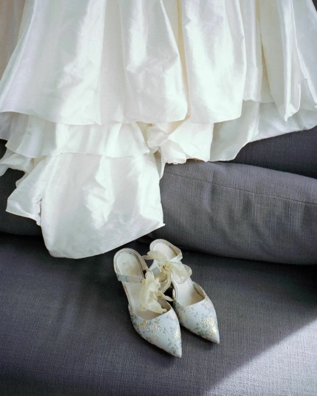 When it comes to the first dance, comfort is the key to success. A gorgeous pair of heels might be great for the ceremony, but not so much for the dance floor. So consider purchasing an extra pair of shoes that are more practical. For instance, check out ballet flats by Miu Miu or Jimmy Choo. These designer pairs will let you move around, turn and waltz in comfort, plus they are pretty. Forget about rehearsing barefoot! Before your wedding celebration, practice in your new shoes to be confident that you will be able to move easily during the actual event.